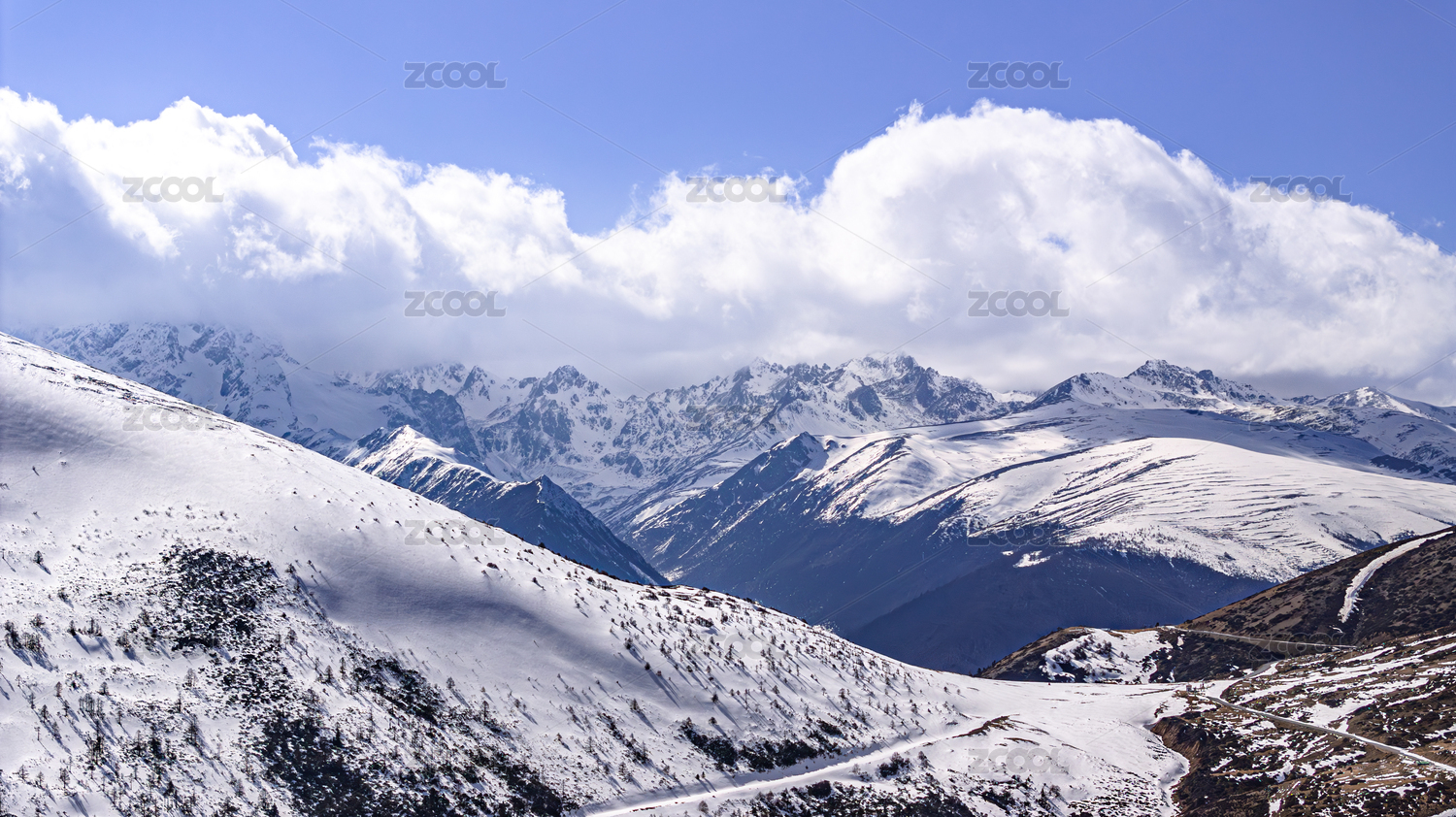 山地地貌,山脉,蓝色,大气现象,高原,蓝天,白云,雪山,植被,山谷