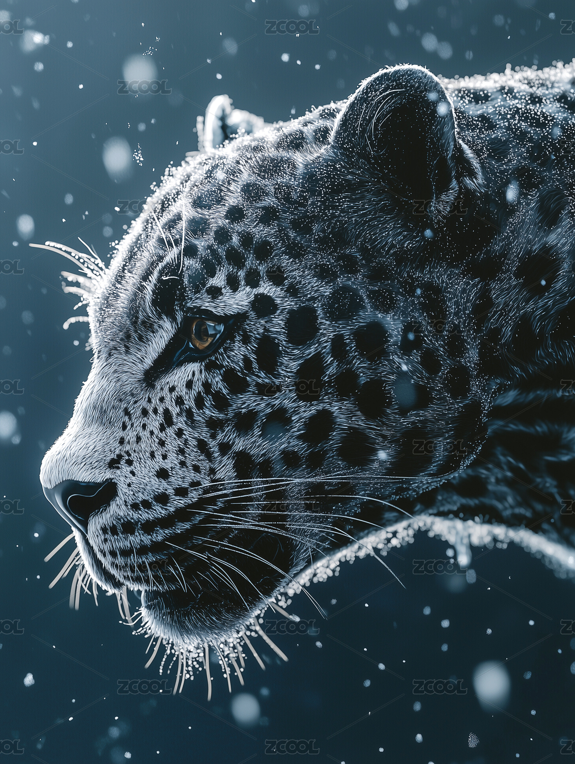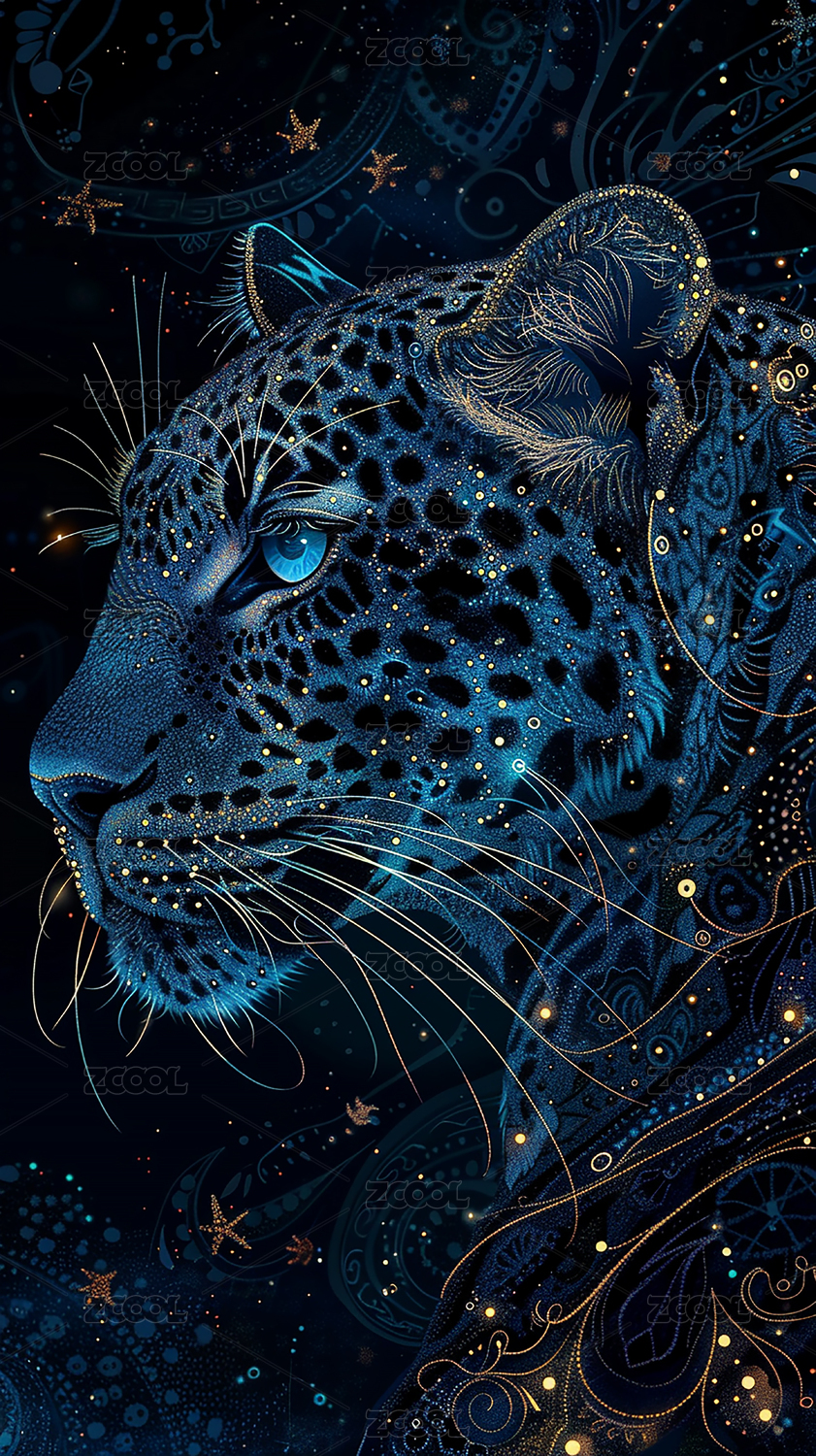 蓝色,闪耀,金色,光点,豹子头,特写,动物
