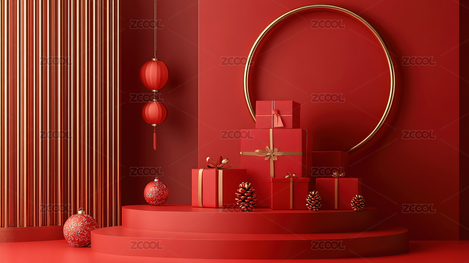 红金色,礼物盒,展台,背景,展示台,电商,促销
