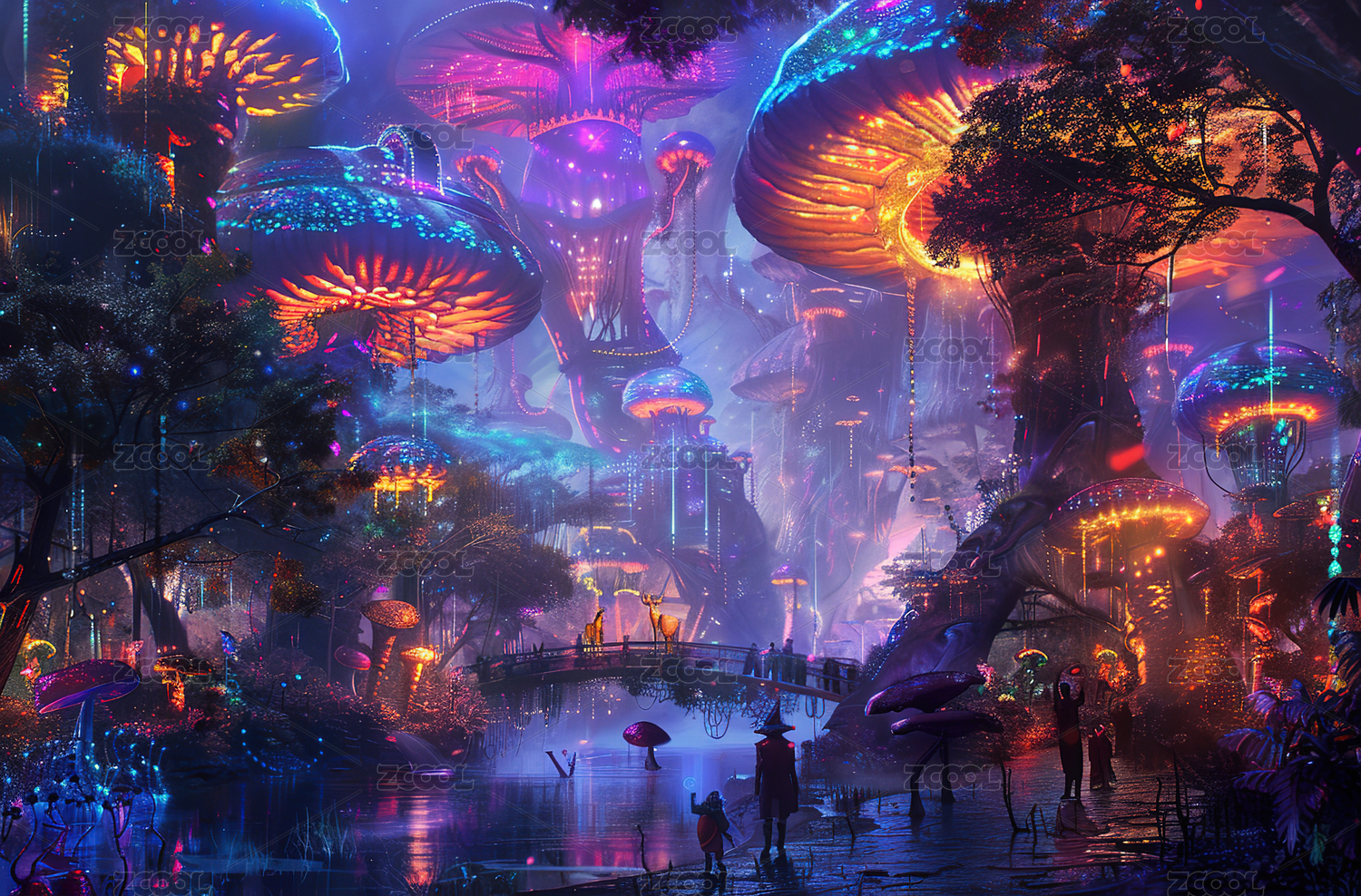 蘑菇,森林,光点,自然,魔幻,夜晚,奇幻,美丽,植物,梦幻