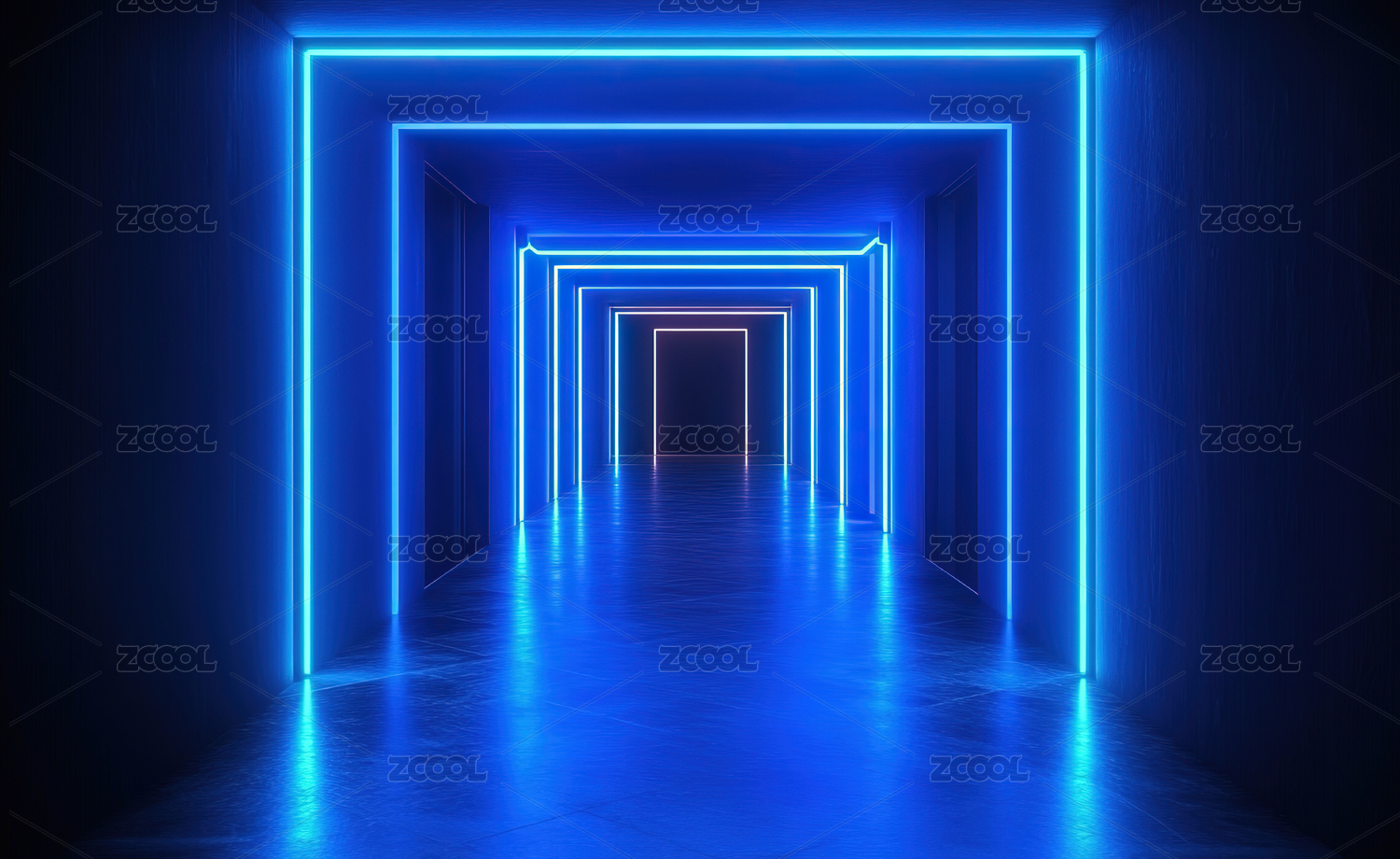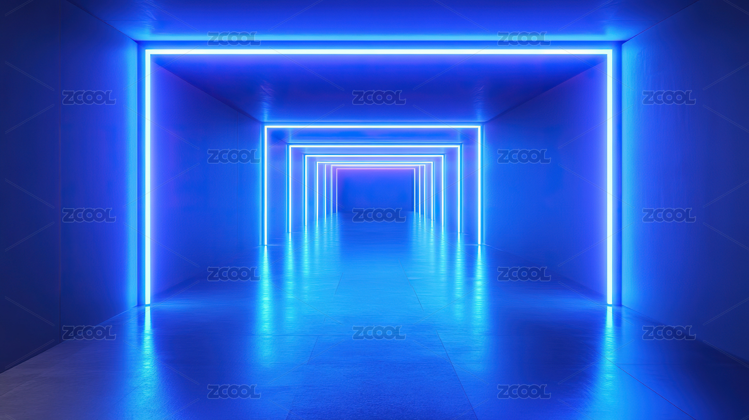 蓝色霓虹灯隧道的未来感场景
