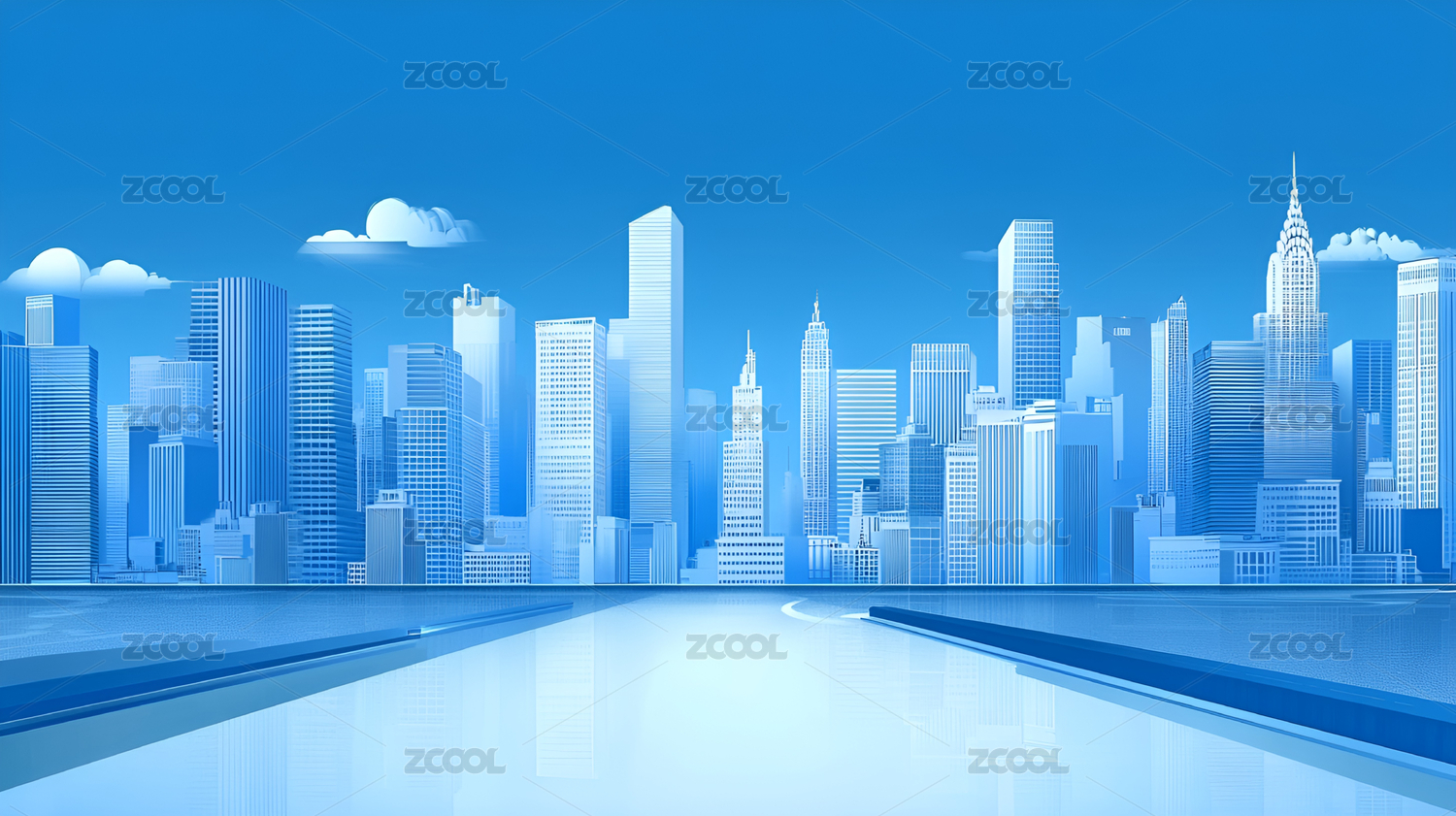 未来都市城市天际线蓝色背景赛博朋克设计图