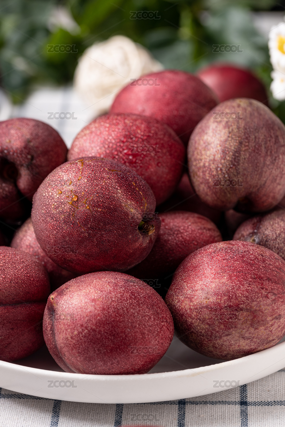 盘子里放着云南白心油桃