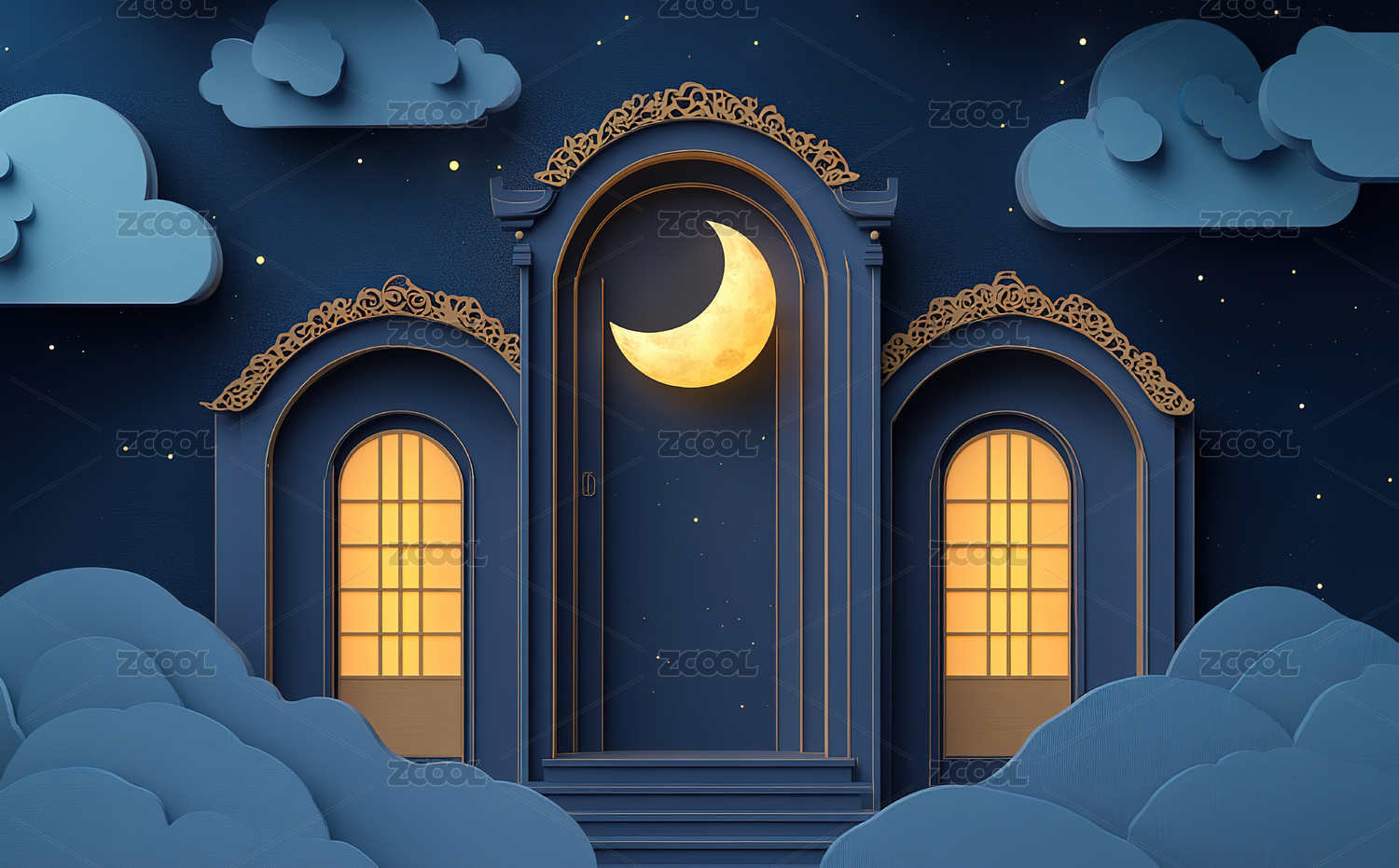 3D渲染蓝色中国风电商展台背景