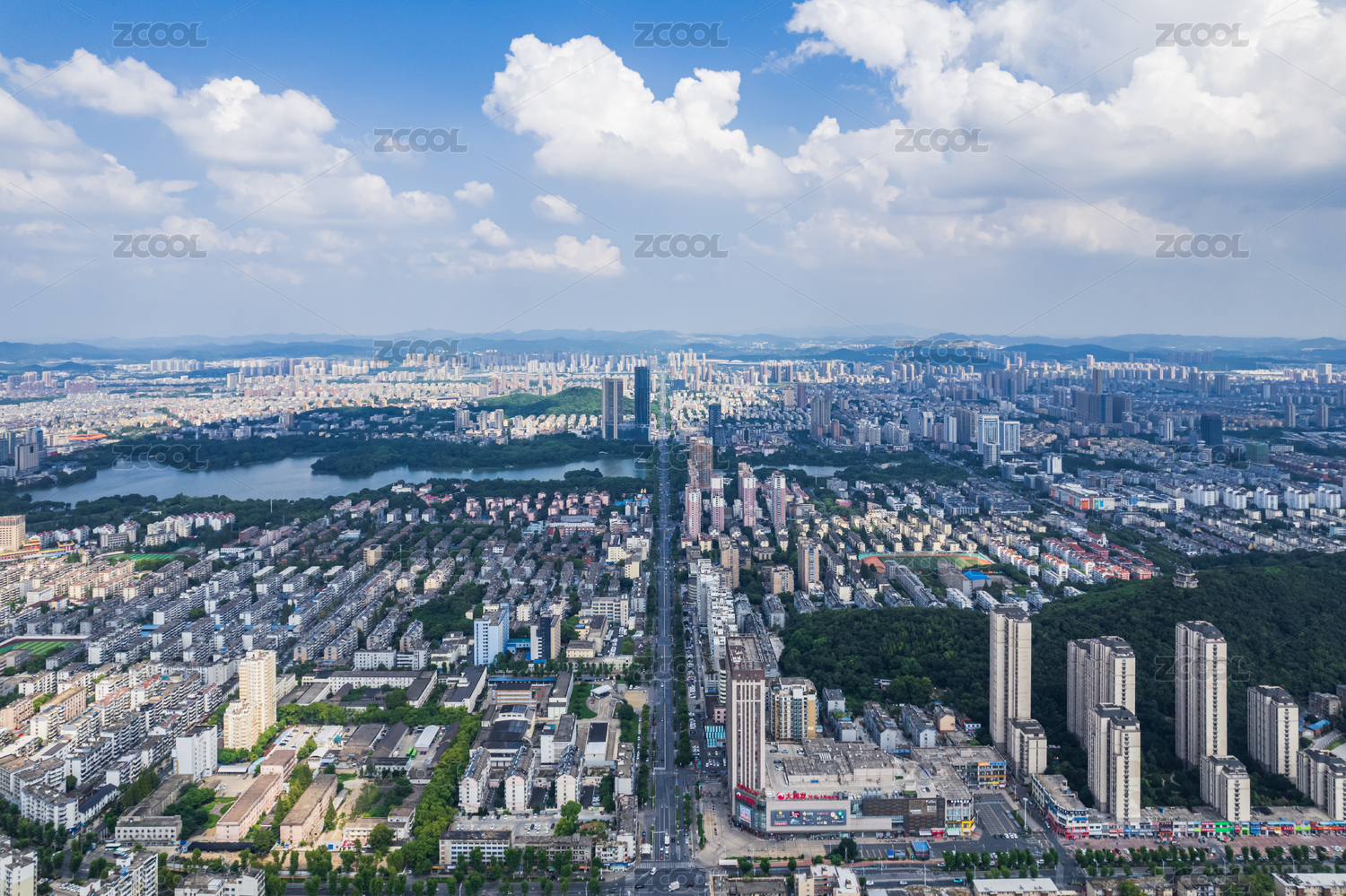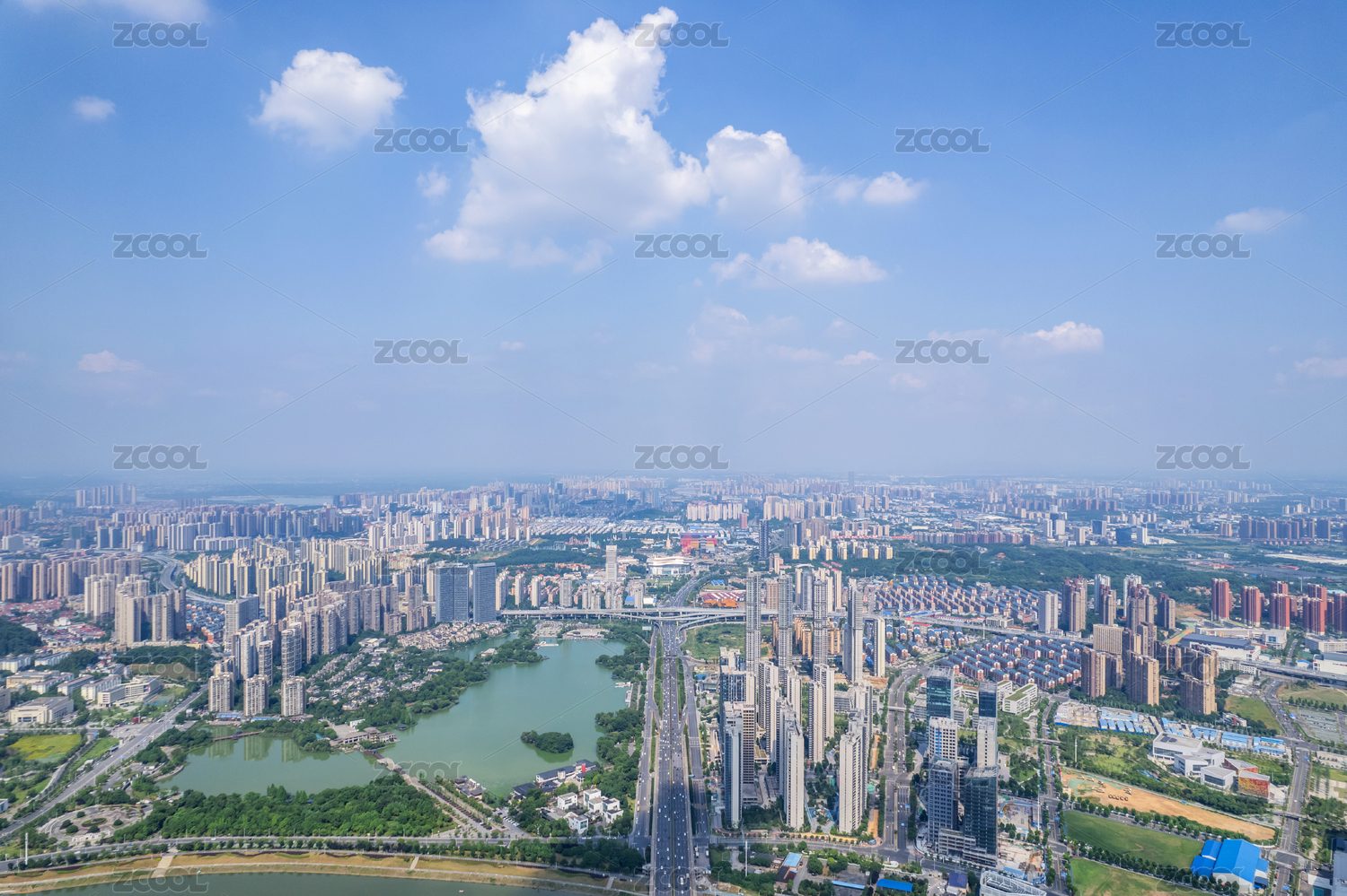 夏日水晶天下的芜湖镜湖主城风光航拍