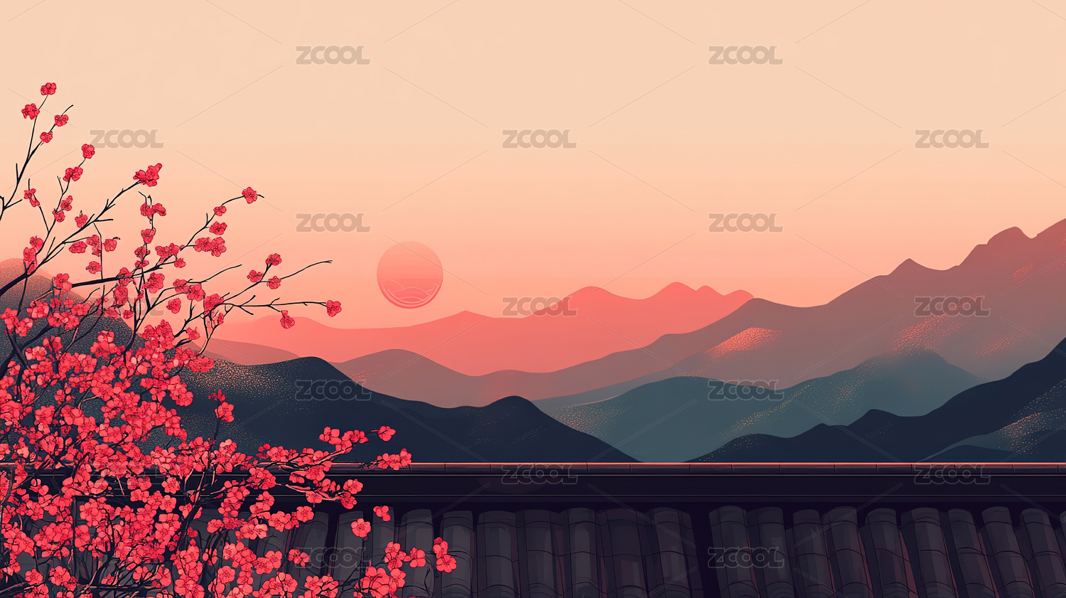 水墨,山水,中国风,国潮,建筑,亭子,国风,插画,古风,手绘