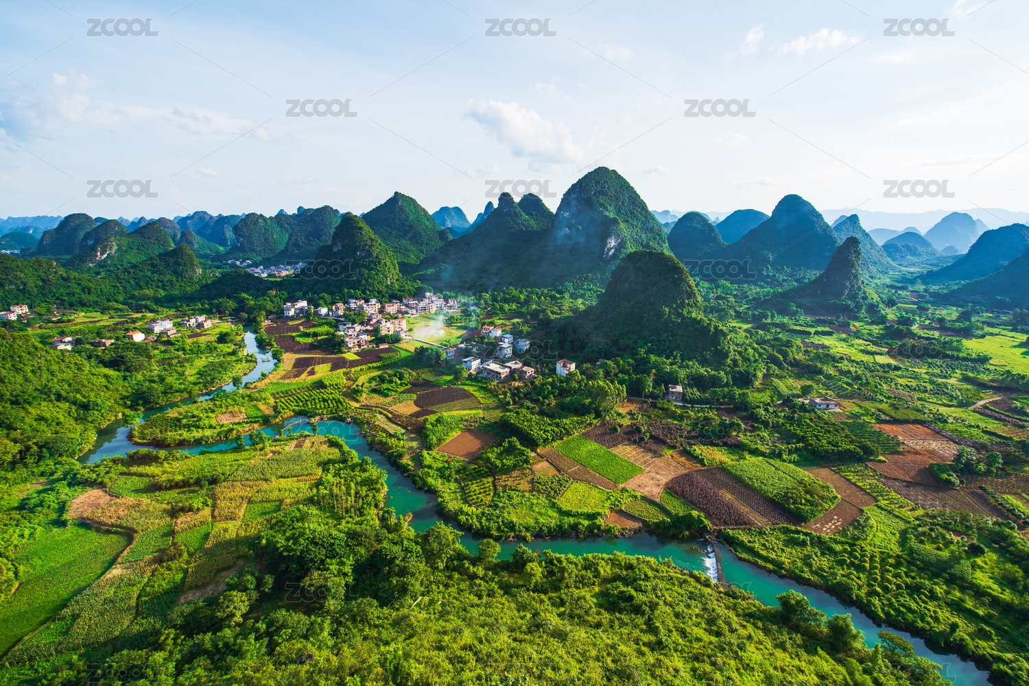 桂林山水,田心村,状元桥,农田,稻田,麦田,日出,朝霞,山,水
