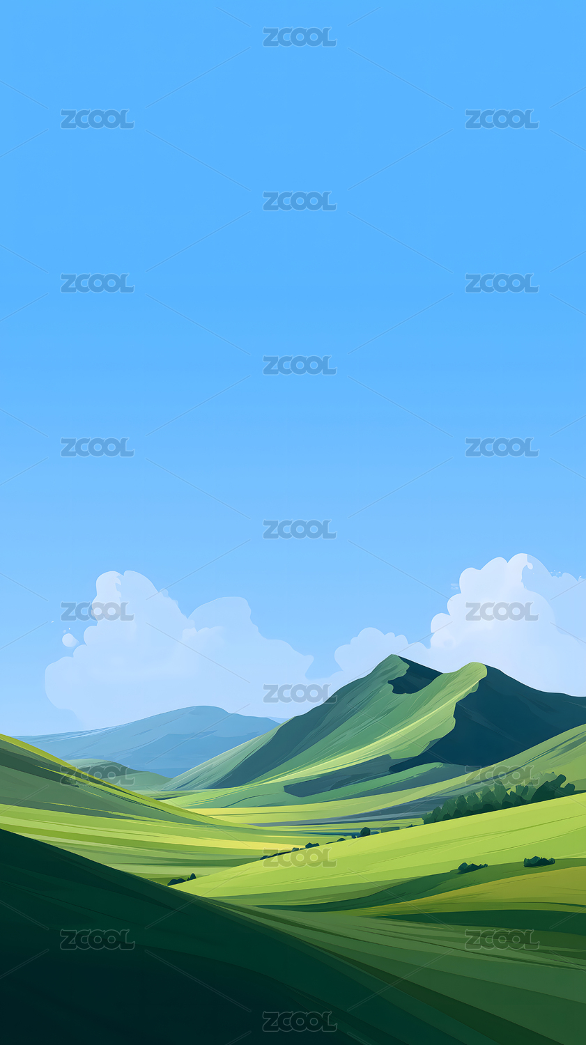 碧空绿地草地远山风景