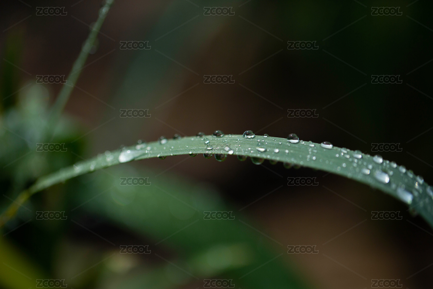 初夏雨后茅草叶上晶莹剔透千姿百态的露珠
