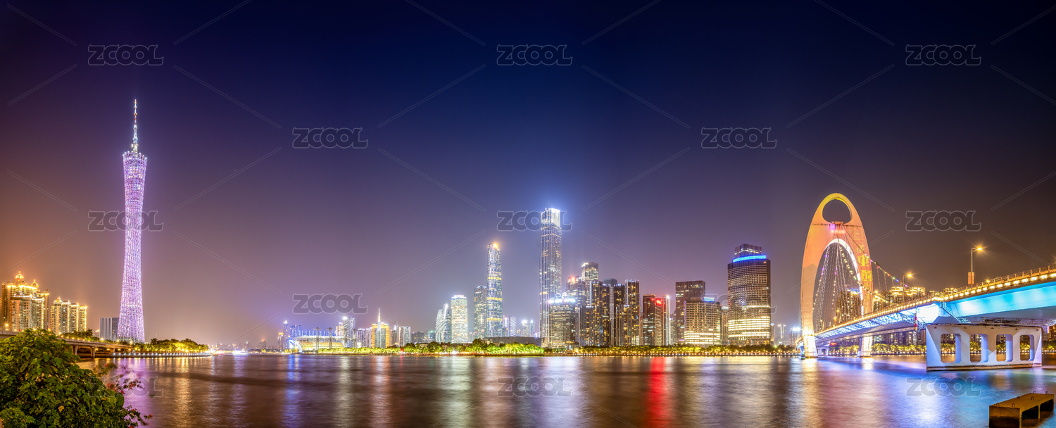 中国广州城市天际线夜景风光