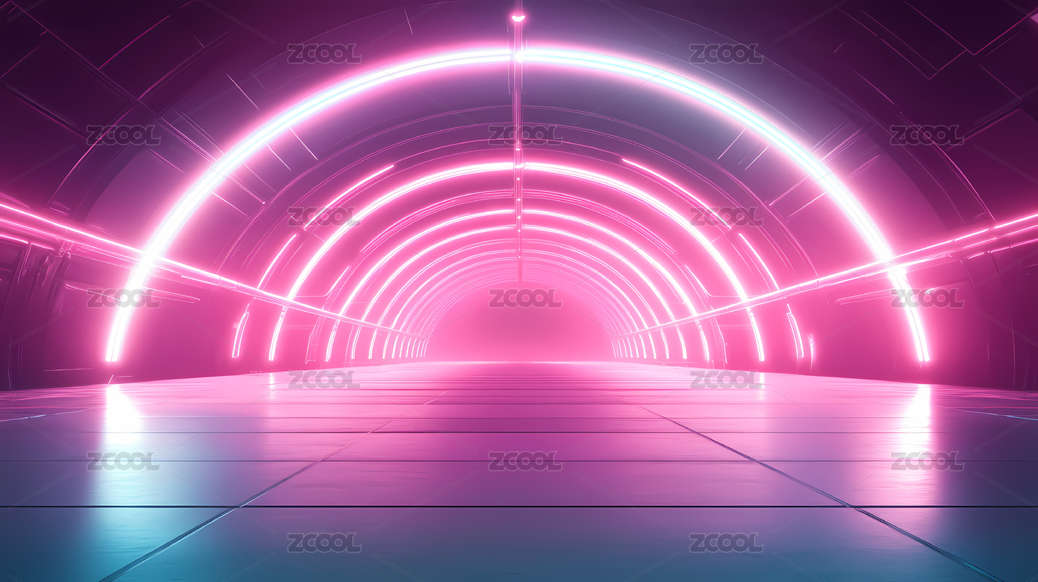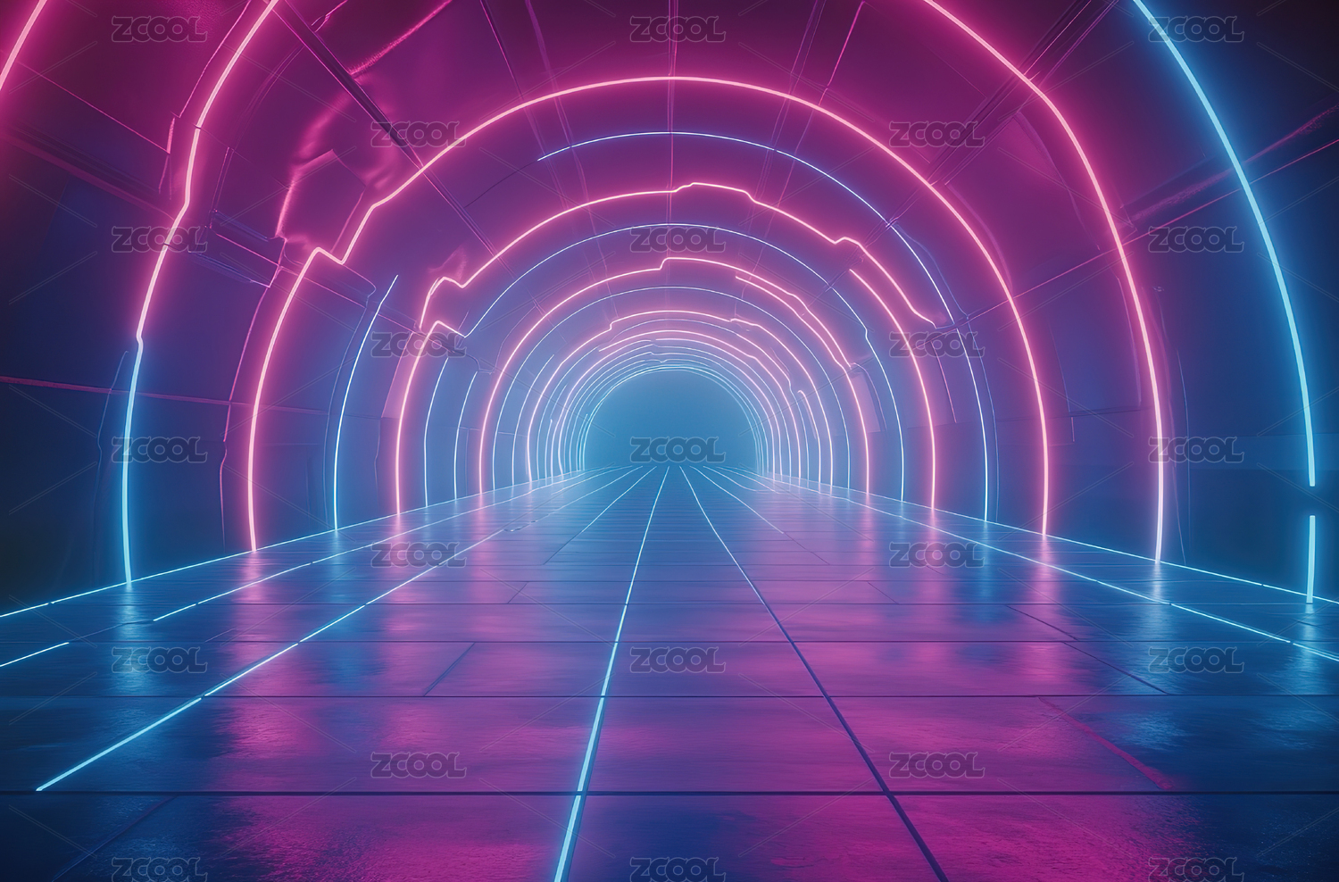 数码科技紫色霓虹灯抽象未来派隧道海报背景