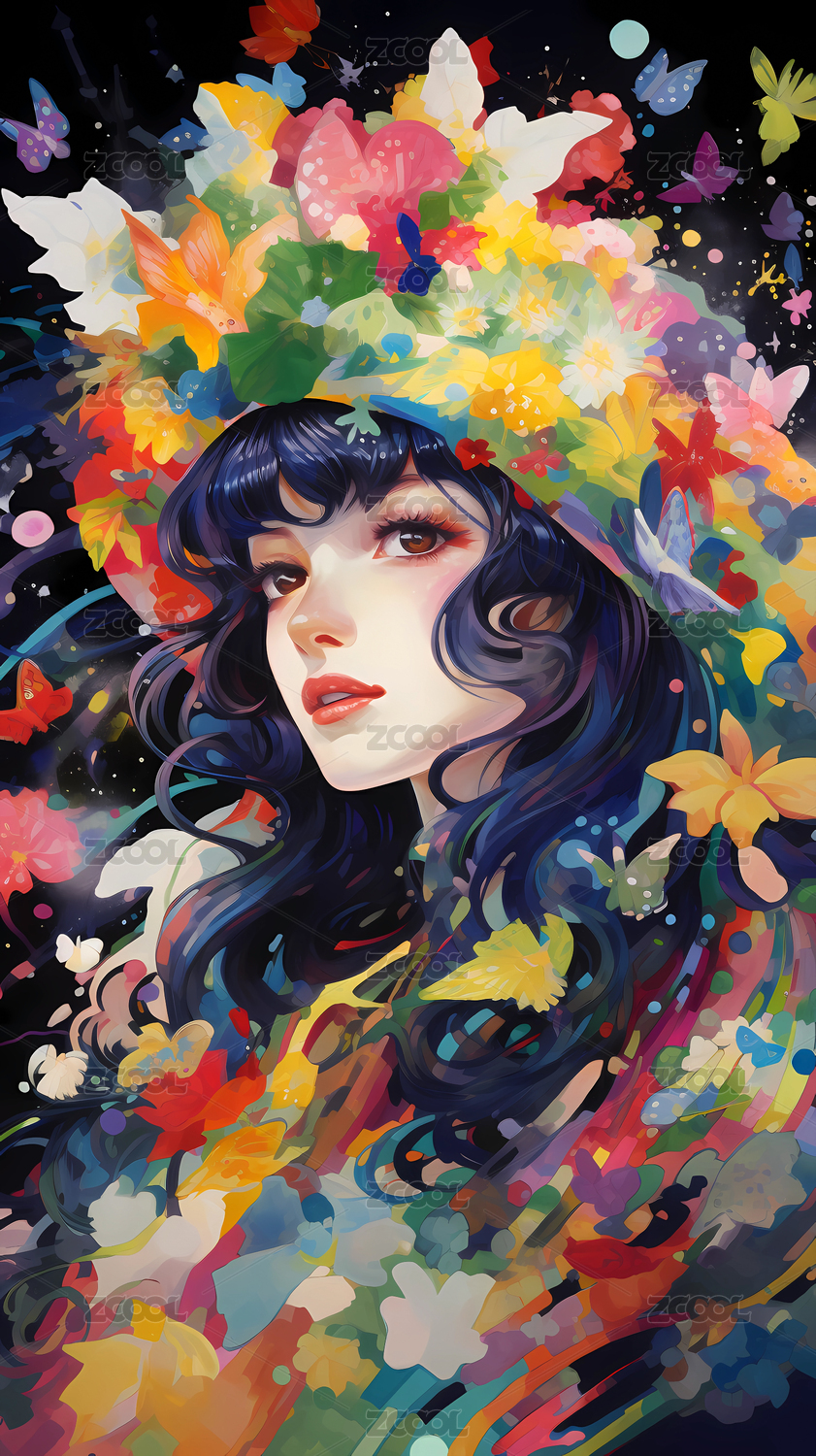 青春时尚的二次元少女壁纸插画