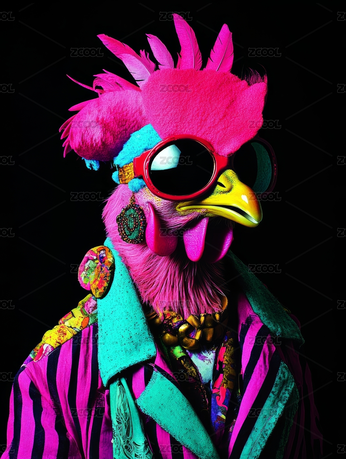 嘻哈时尚涂鸦潮流风格生肖鸡插画