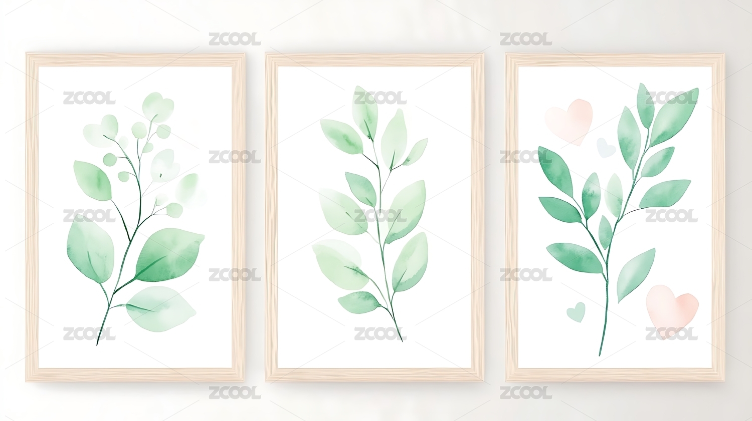 水彩绿叶装饰画