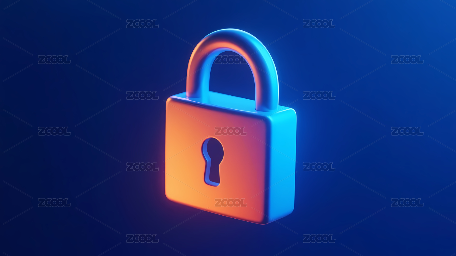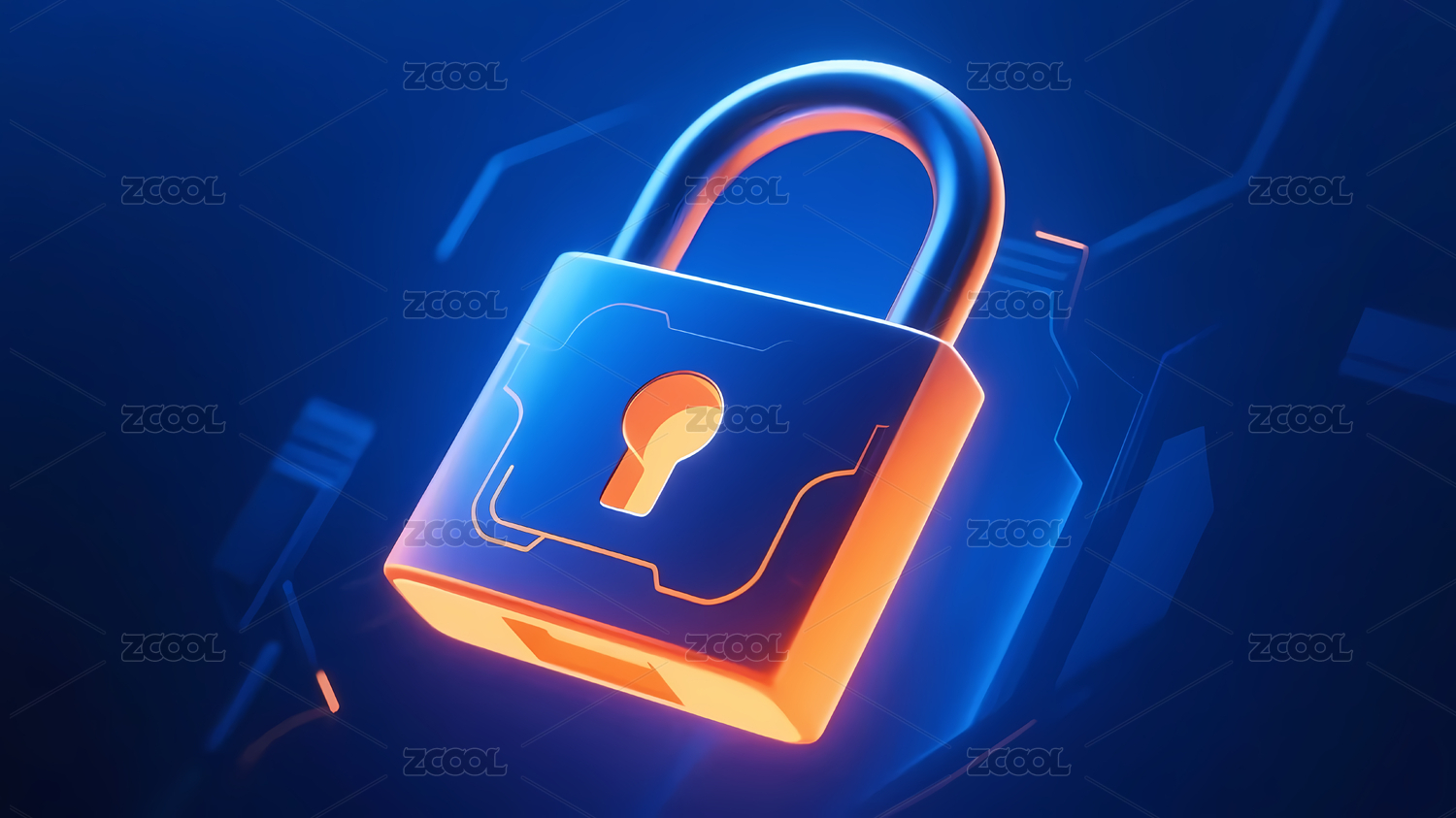 发光橙色锁深蓝背景