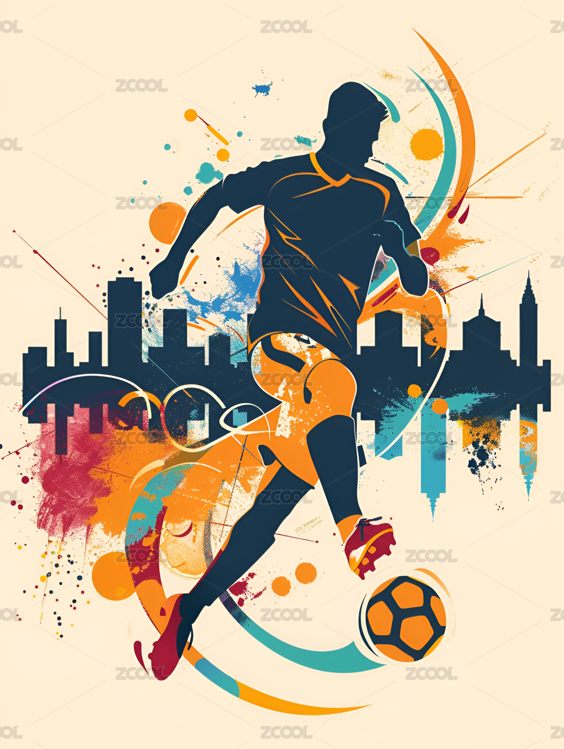 彩色风格的踢足球男运动员
