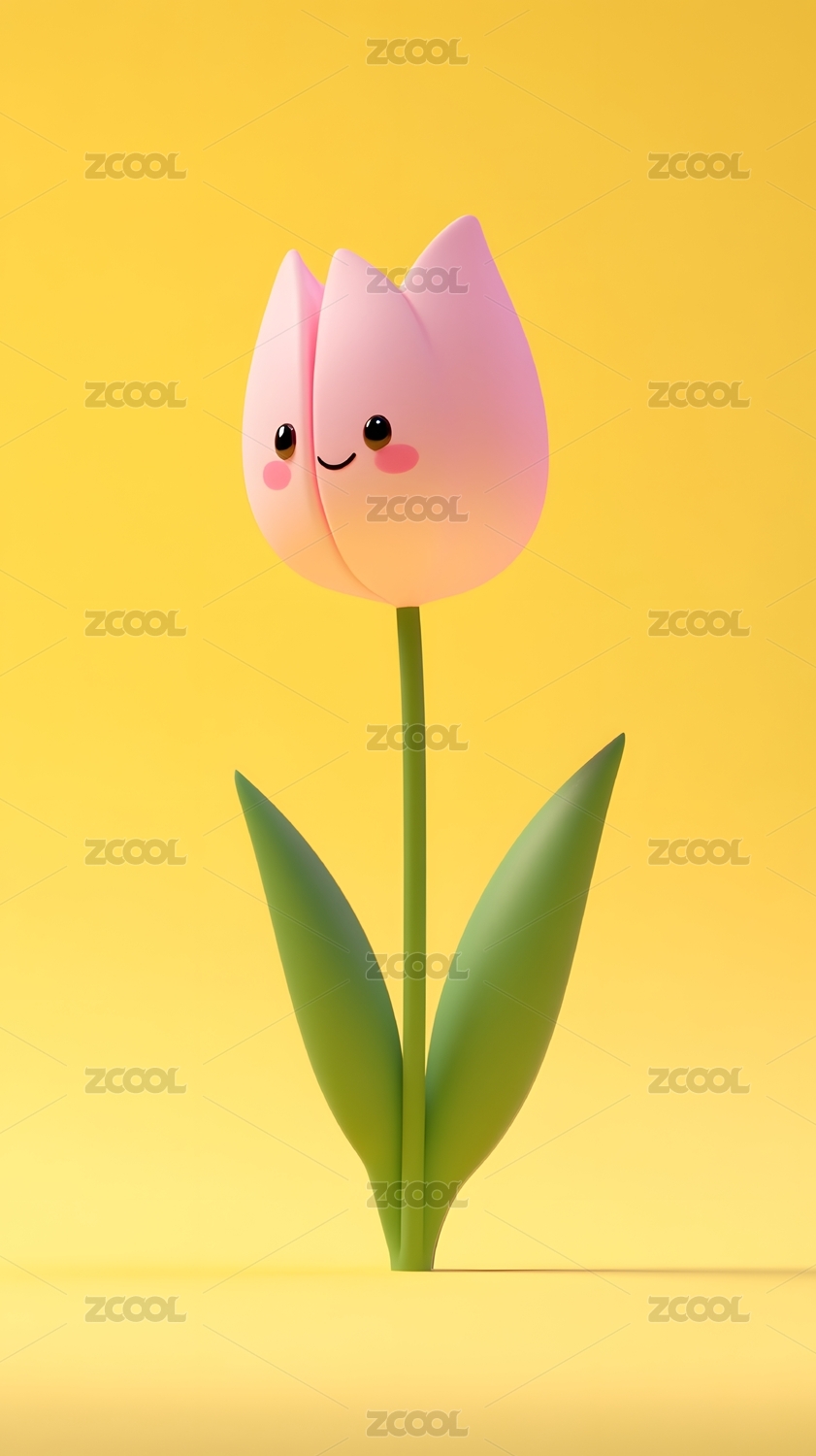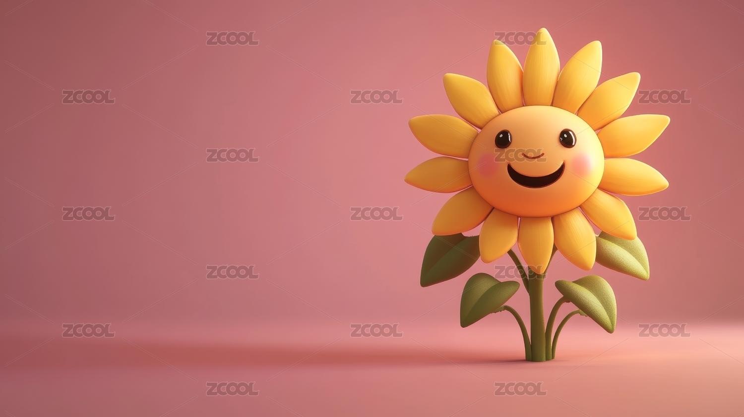 三维,立体,3D,插画,可爱,卡通,创意,壁纸,粉色,花卉