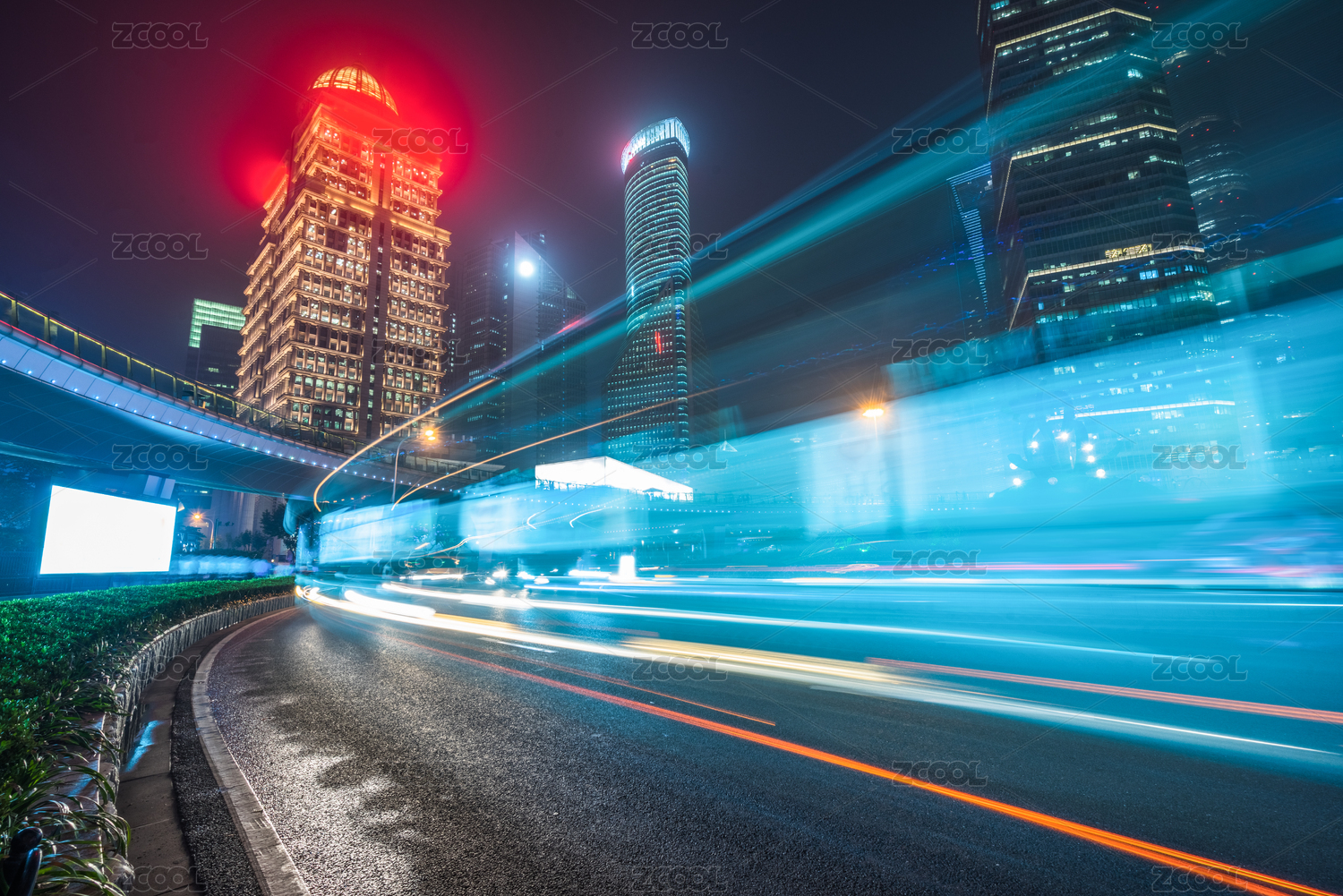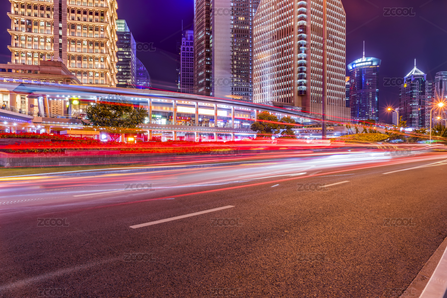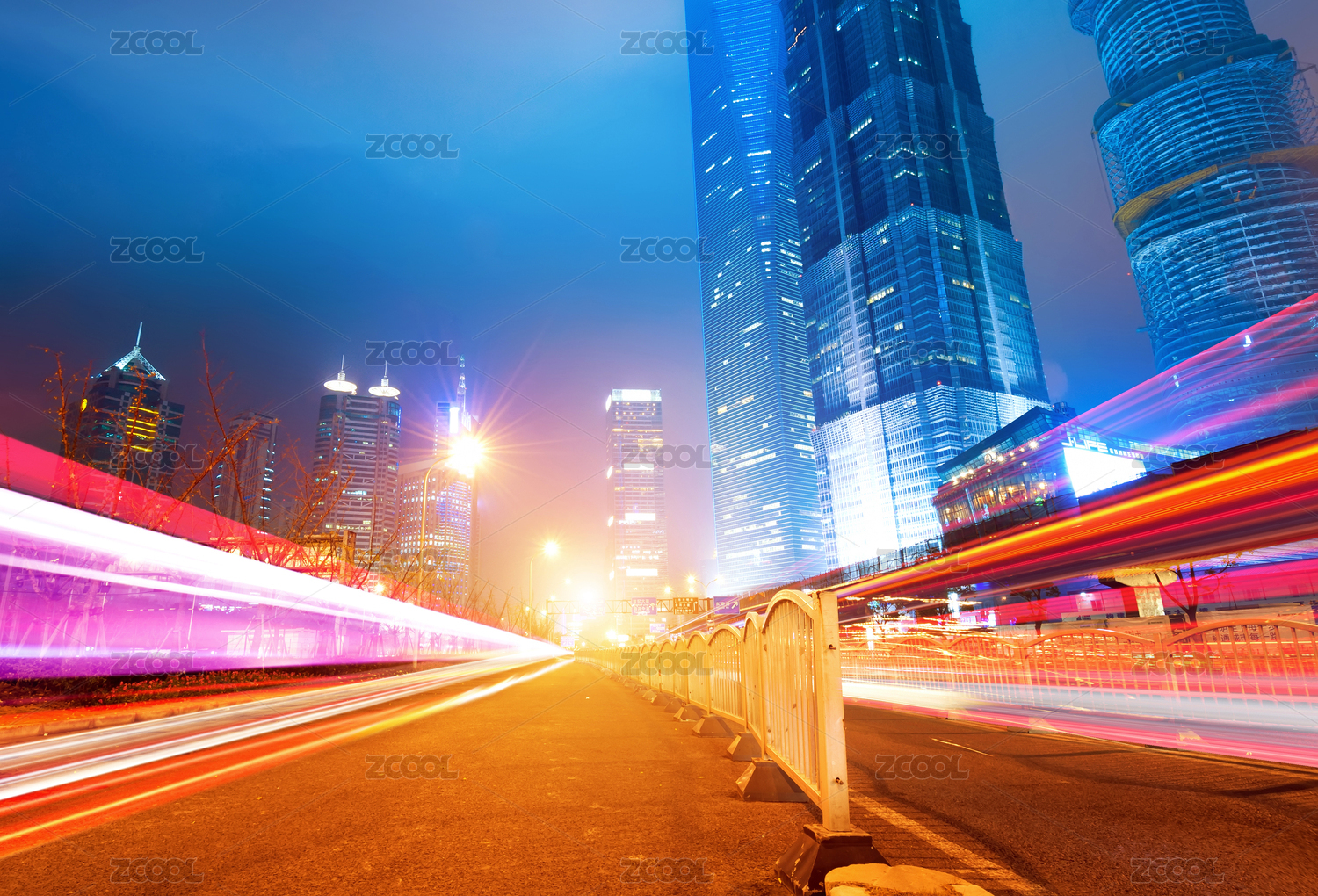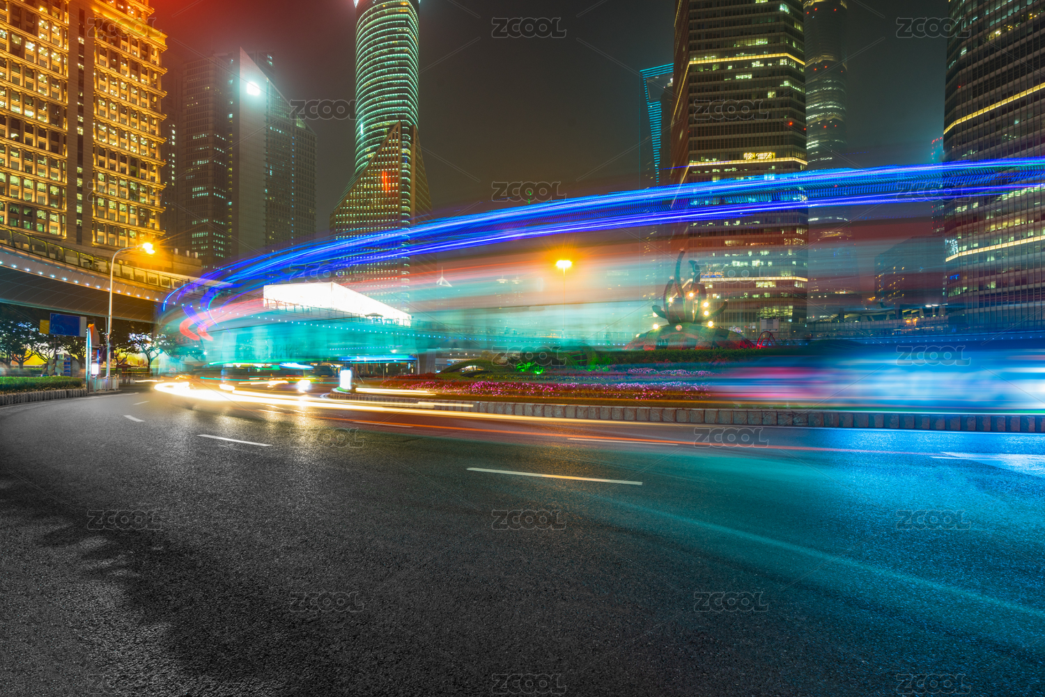 香港夜景,飞驰的汽车尾灯形成的光的轨迹