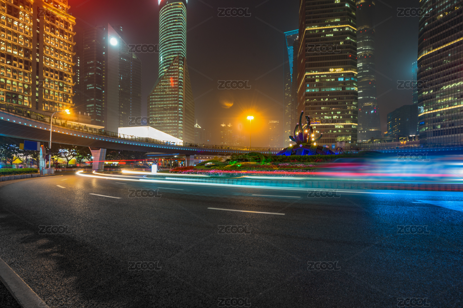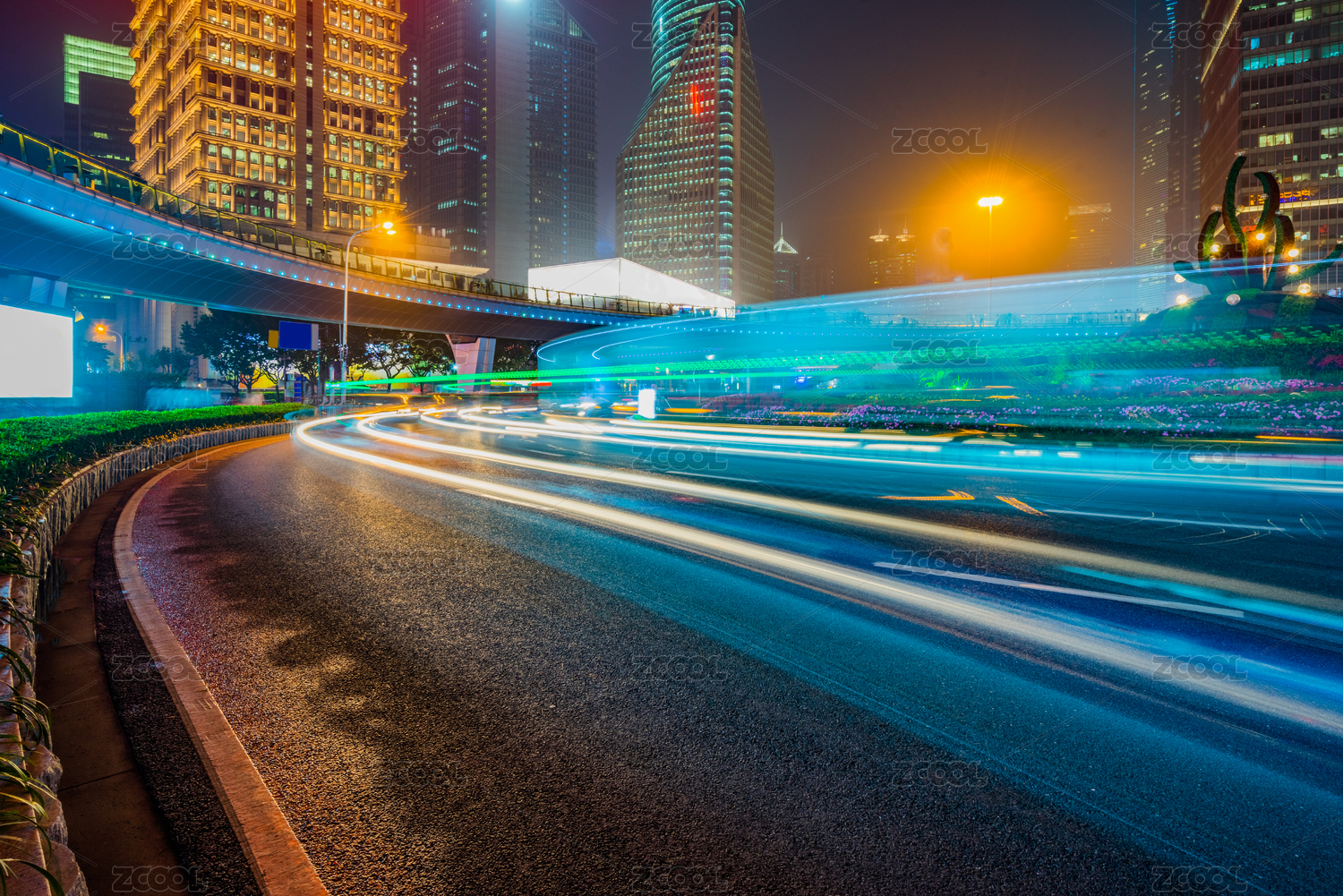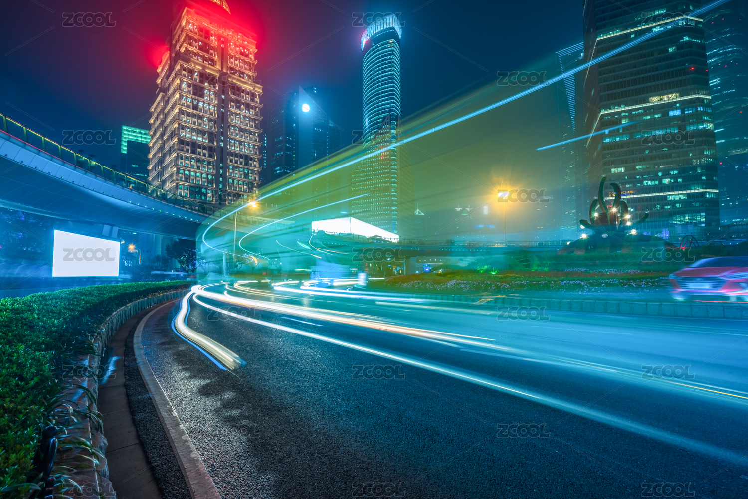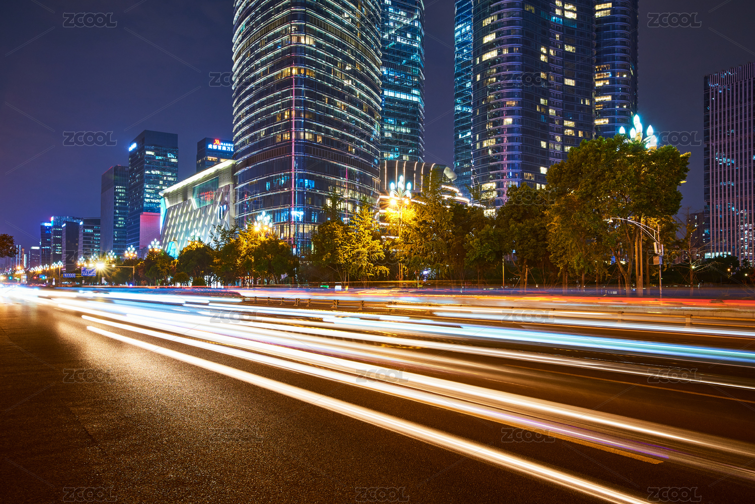 香港夜景,飞驰的汽车尾灯形成的光的轨迹