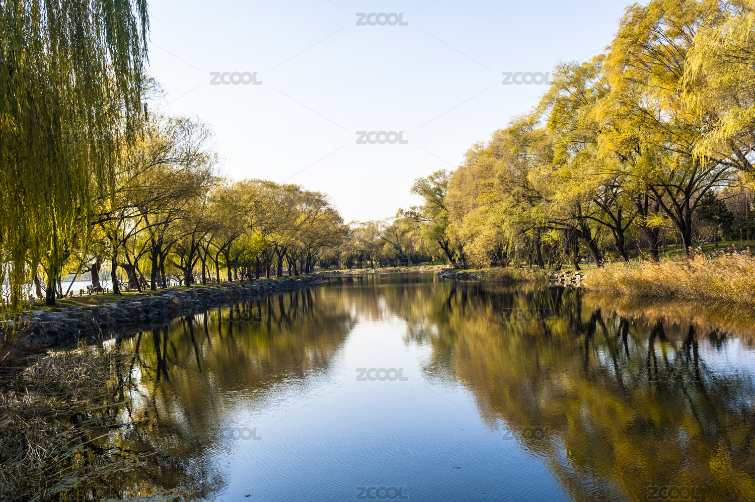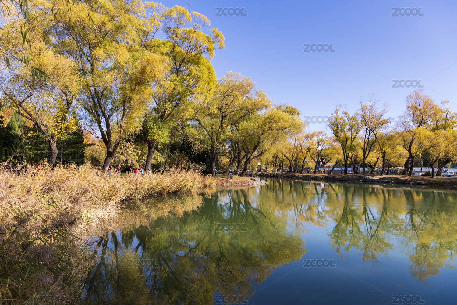 北京奥林匹克森林公园树木园绿地湖面倒影