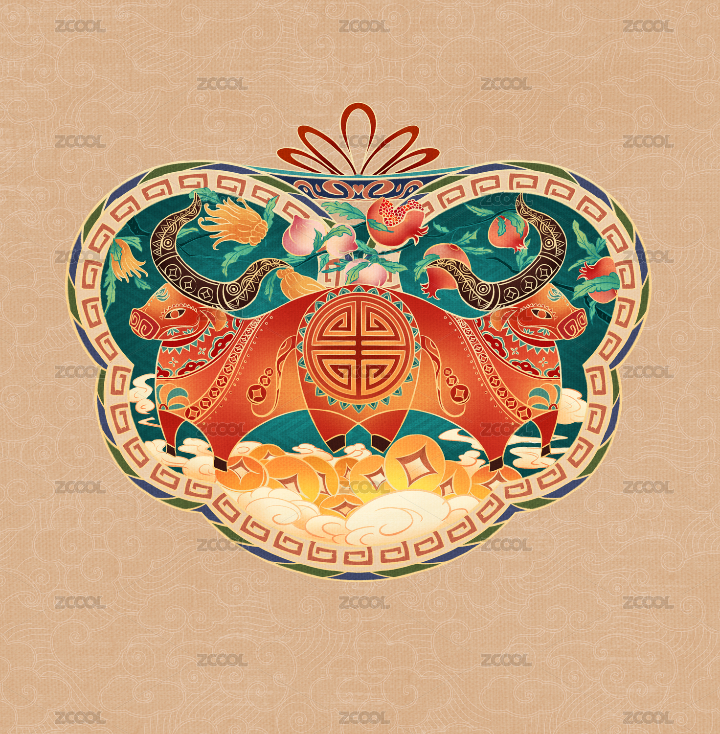 牛年吉祥图腾——金牛站乾坤,牛市连年红