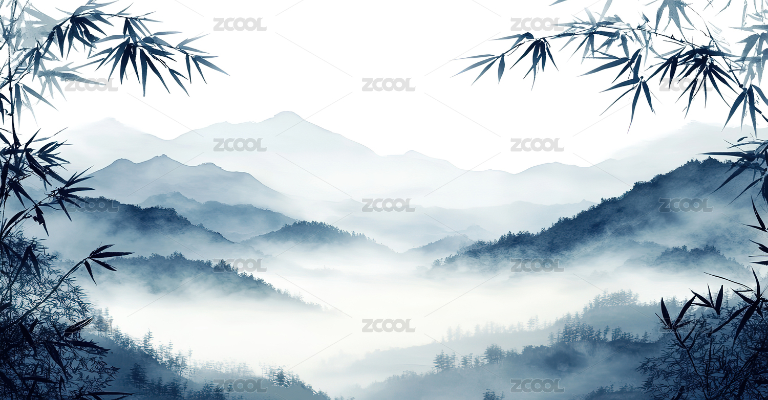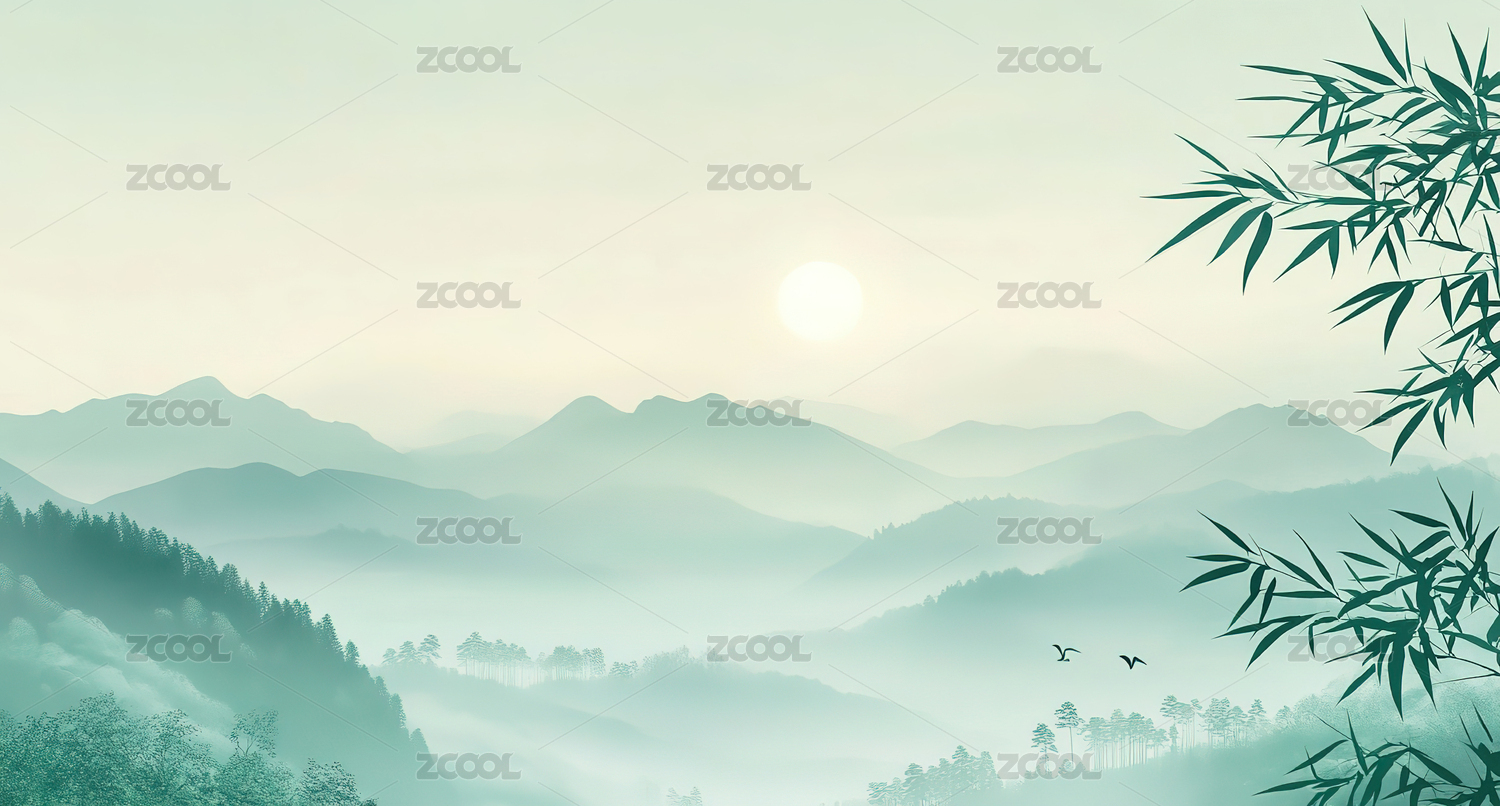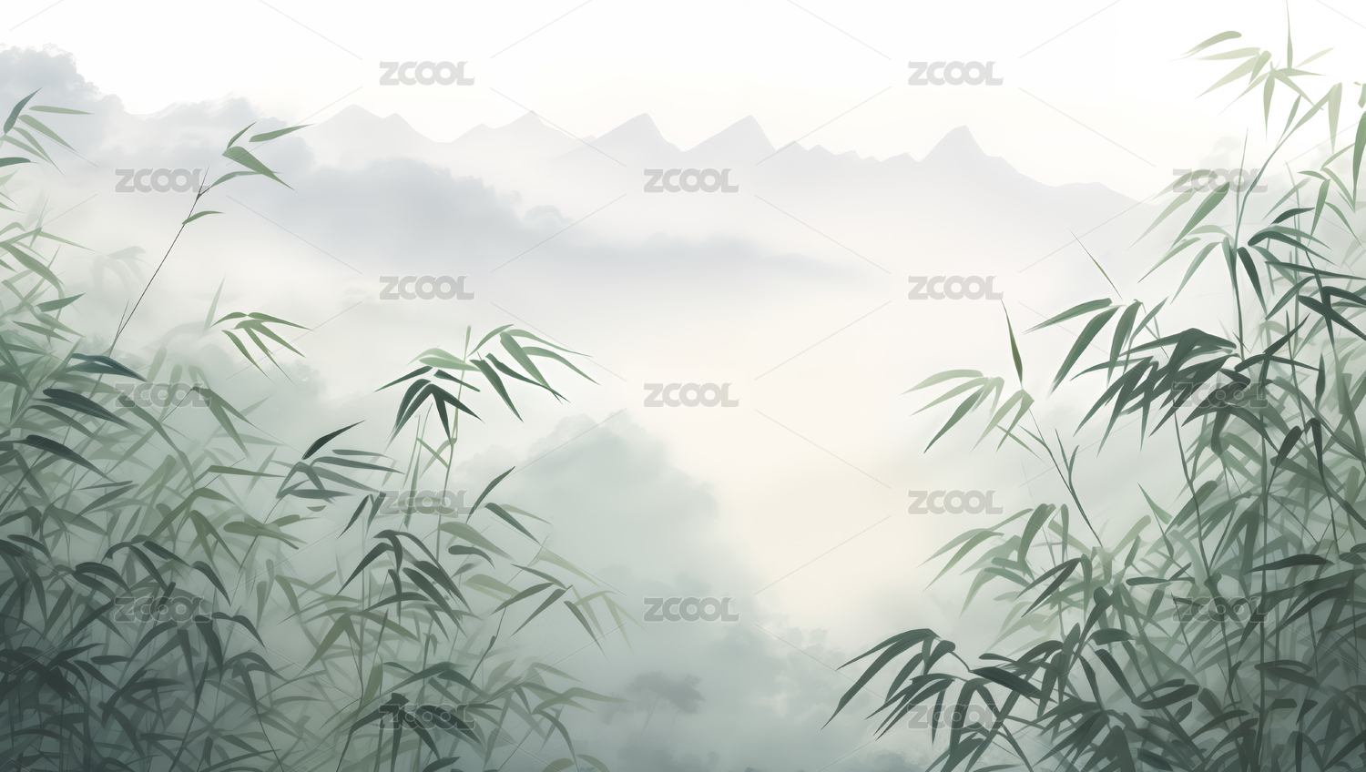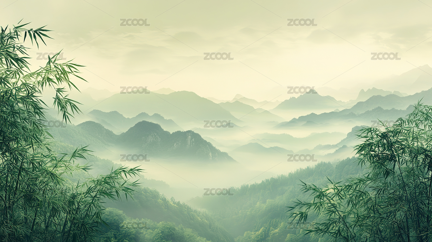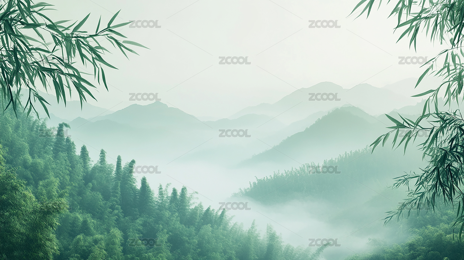 宁静,安静,风光,风景,雾气,绿叶,留白,远山,中国风