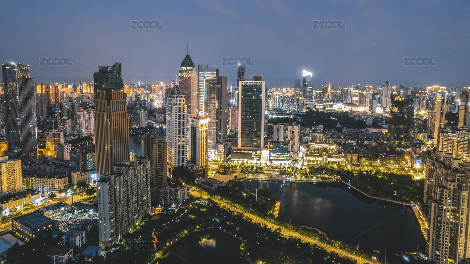 航拍江苏无锡城市建筑景观全景大画幅夜景