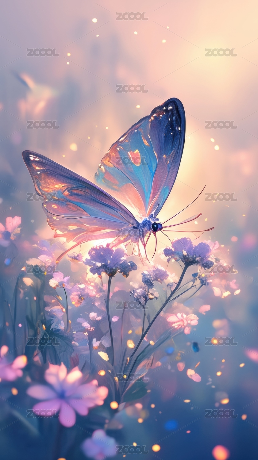 梦幻蝴蝶栖息于花丛