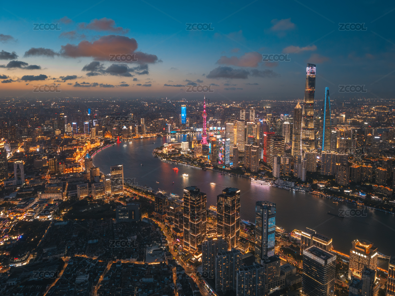 航拍现代化大都市中国上海的城市风光夜景天际线