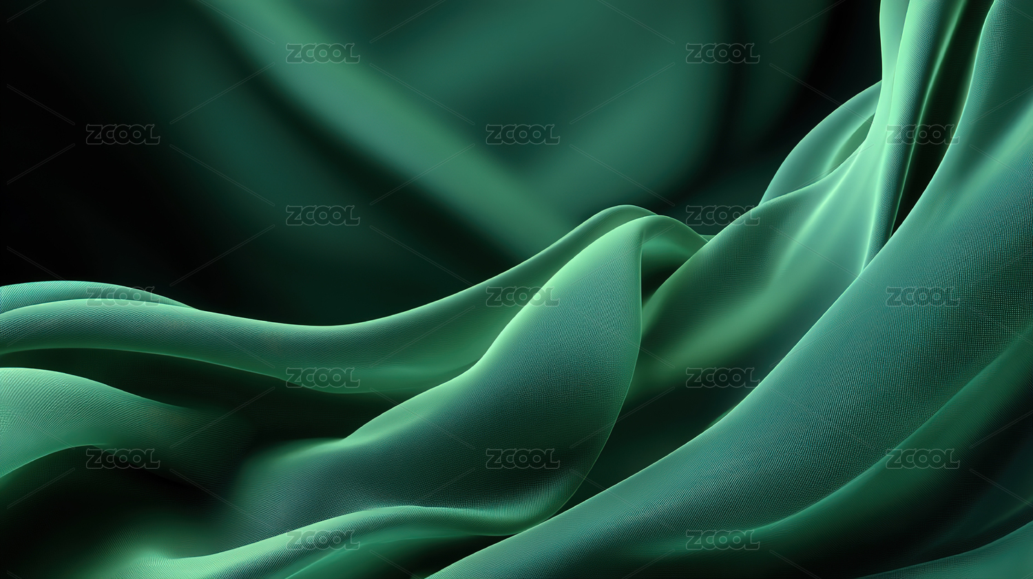 绿色丝绸褶皱光影交错质感细腻抽象背景