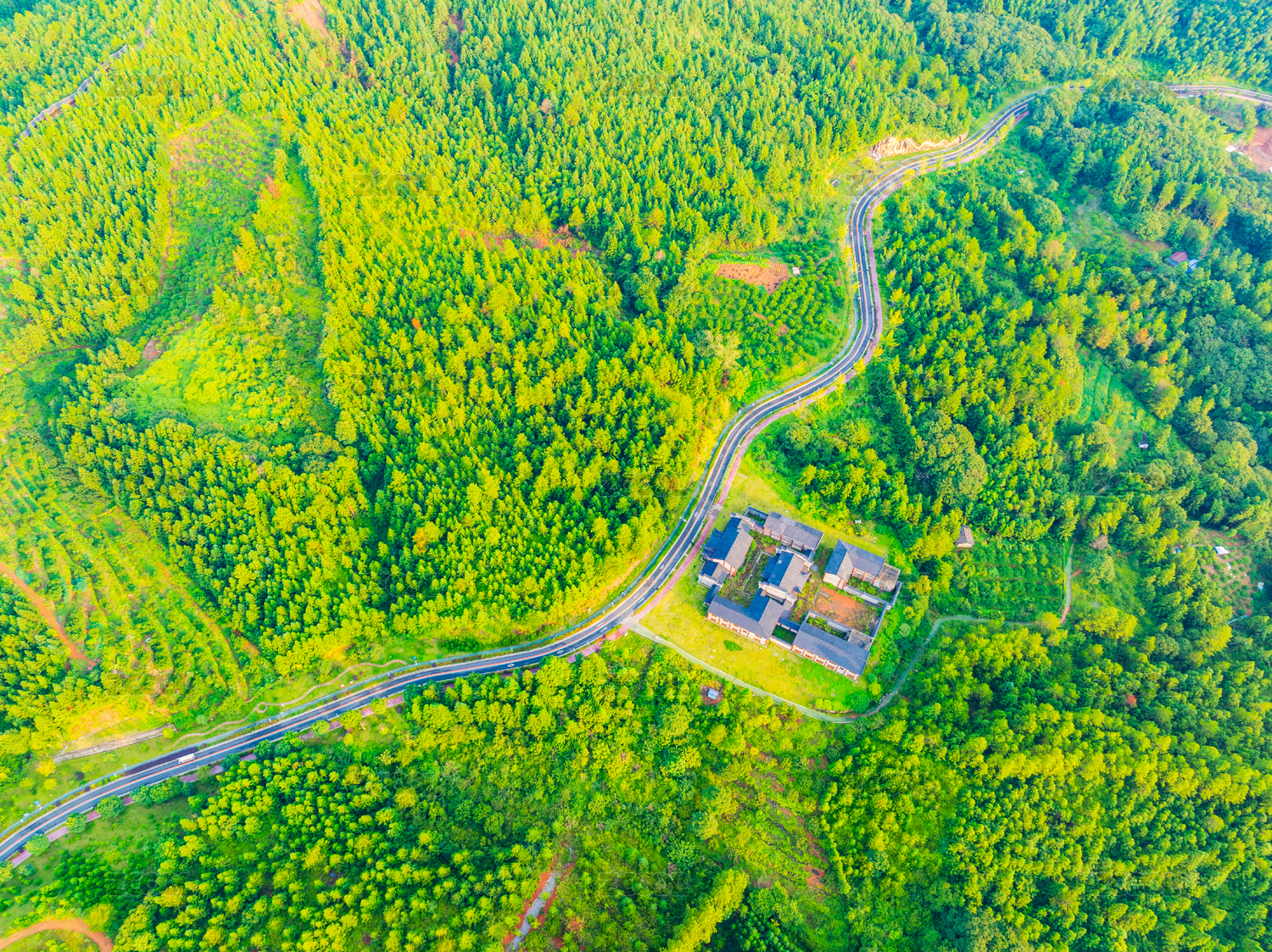 航拍中国江苏常州溧阳天目湖镇竹林掩映村落