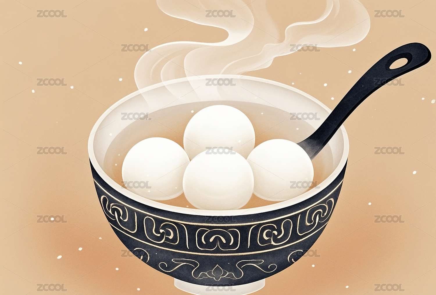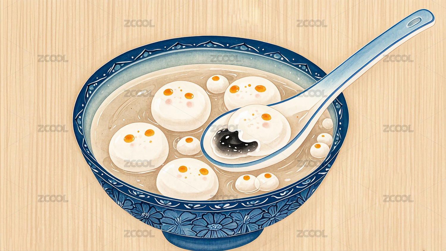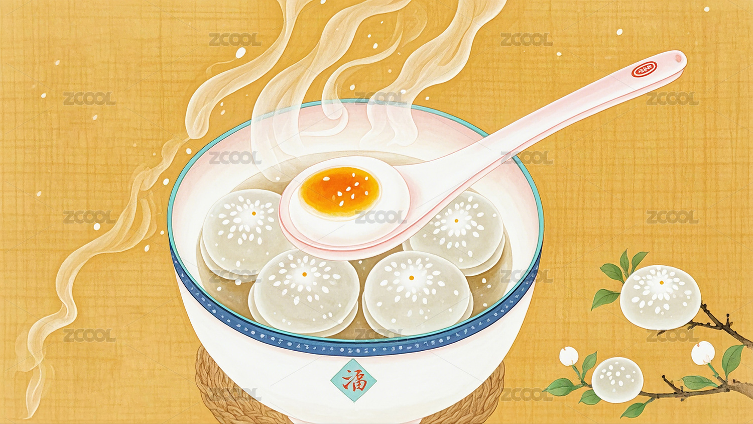 汤圆,插画,汤圆插画,国潮插画,元宵节插画,热腾腾的插画,重阳节,节日节气,工笔画,传统节日