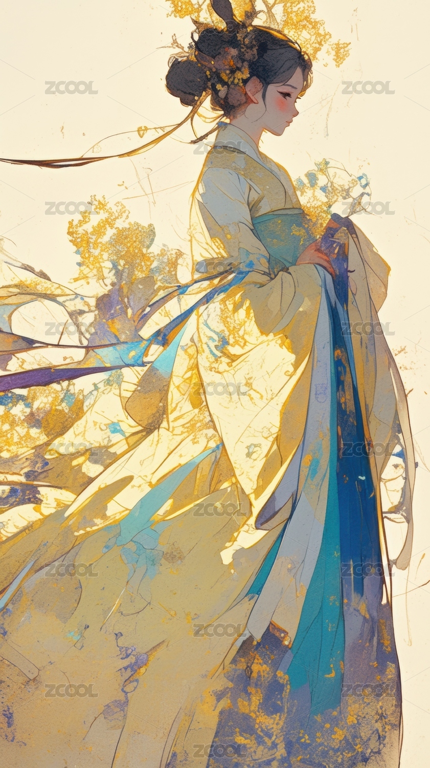竖版中秋民国传统美女桂花树吃月饼唯美插画