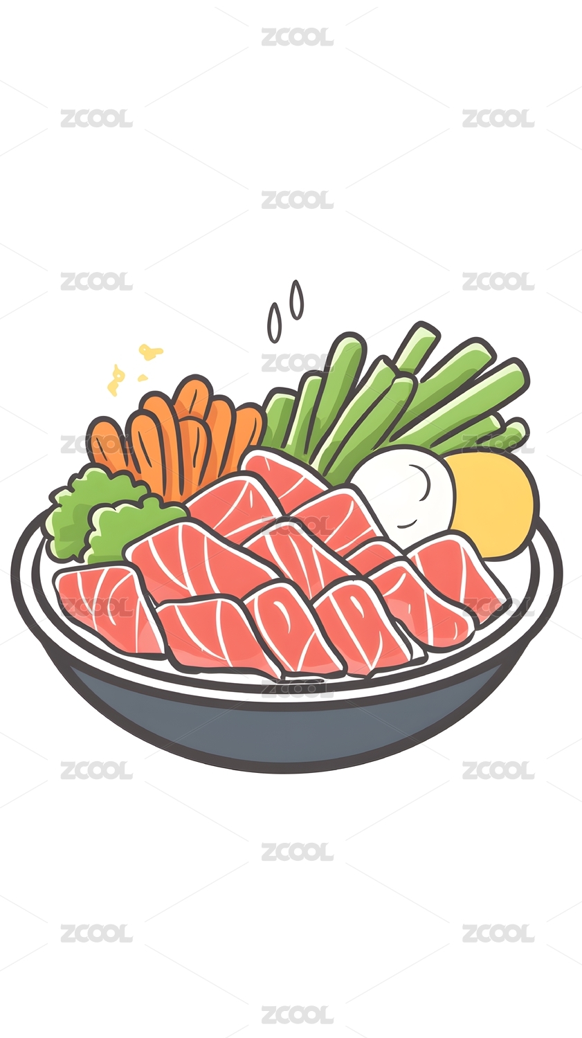 手绘火锅食材荤菜盘