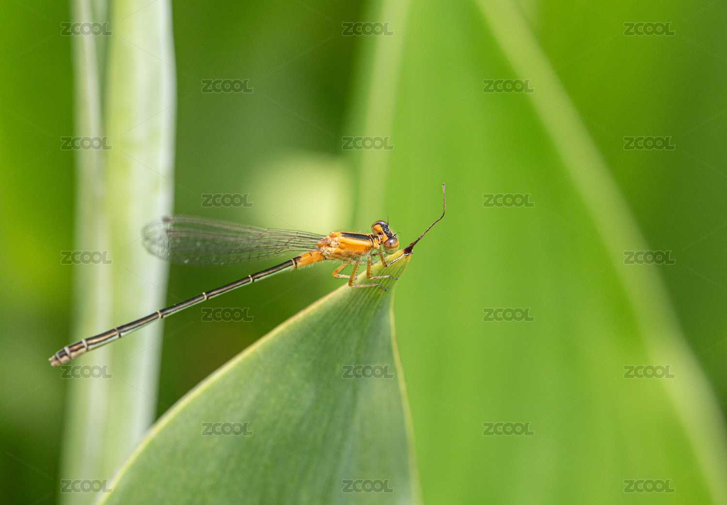 一只栖息在草叶上的蜻蜓目昆虫-豆娘