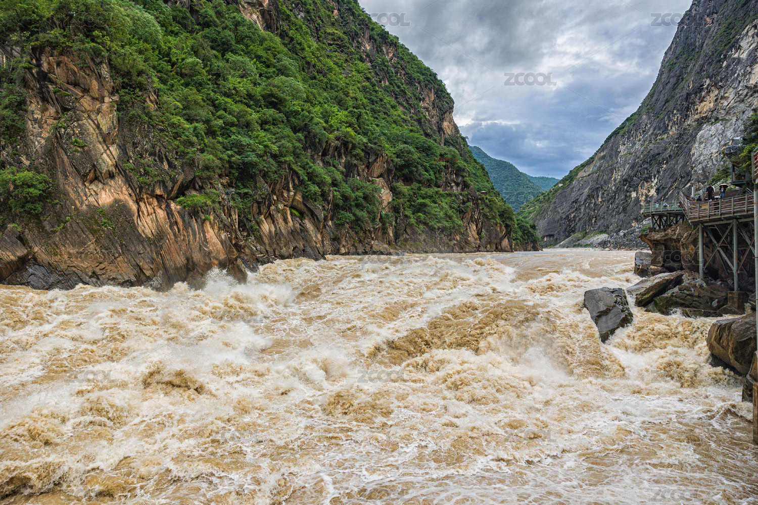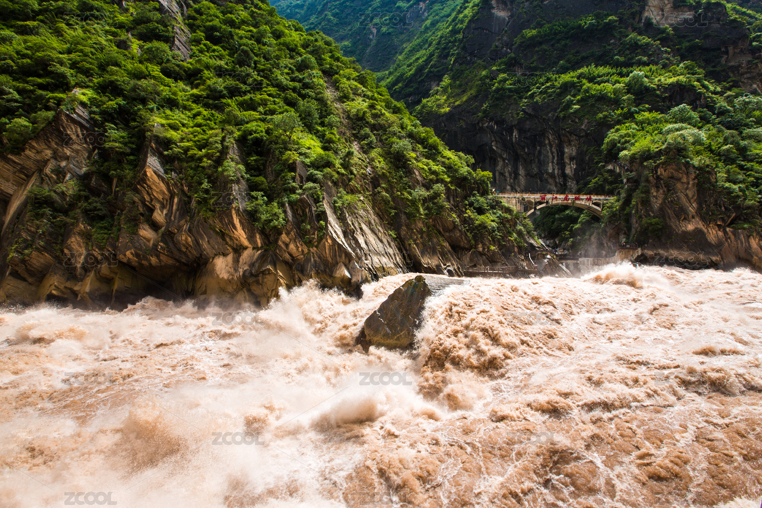 中国云南夏季虎跳峡丰水季峡谷