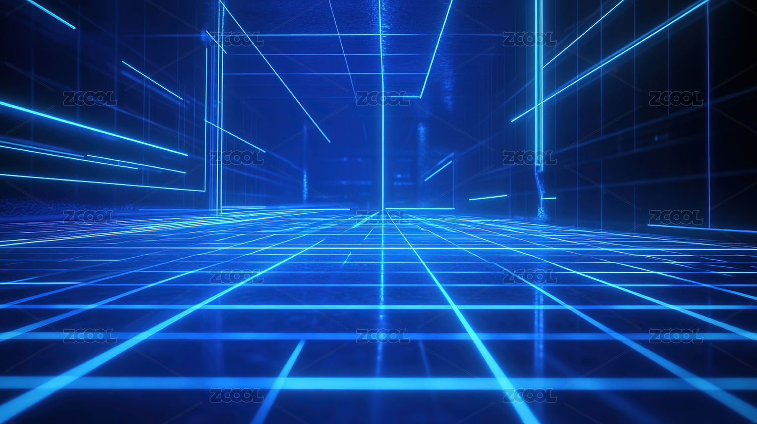蓝色霓虹灯构成的未来科技走廊