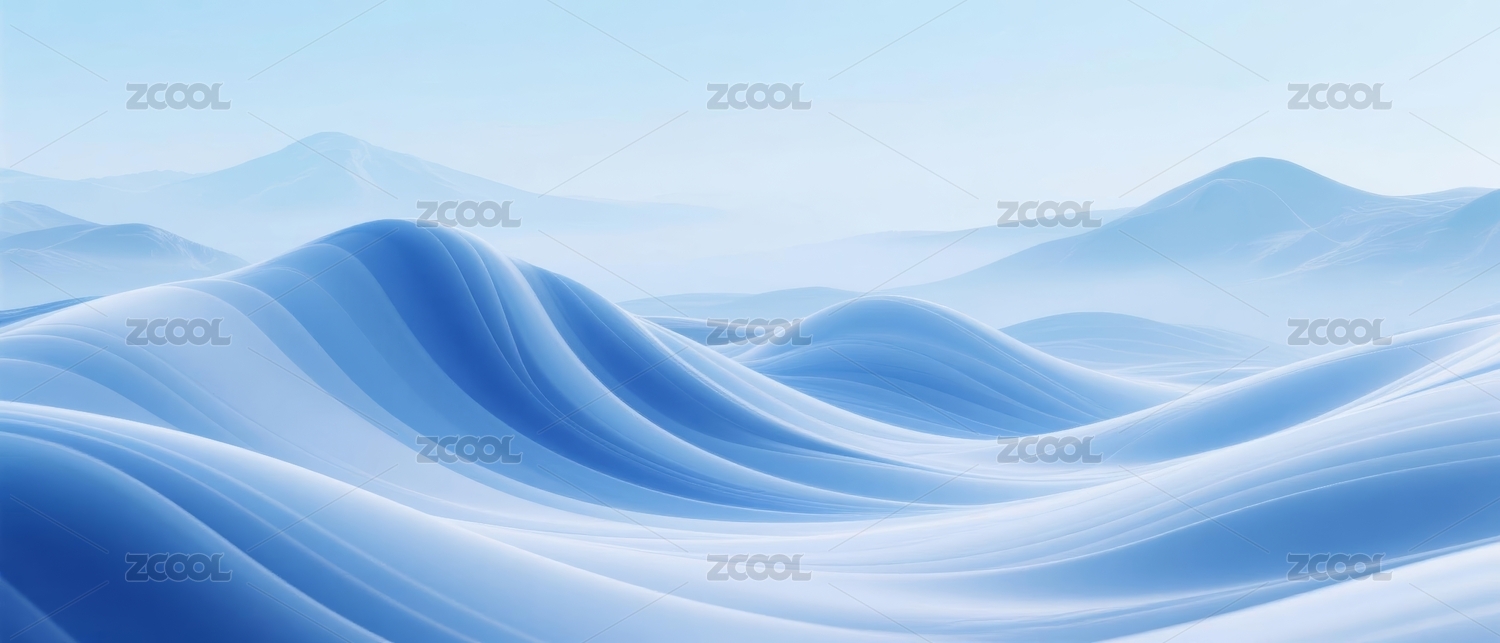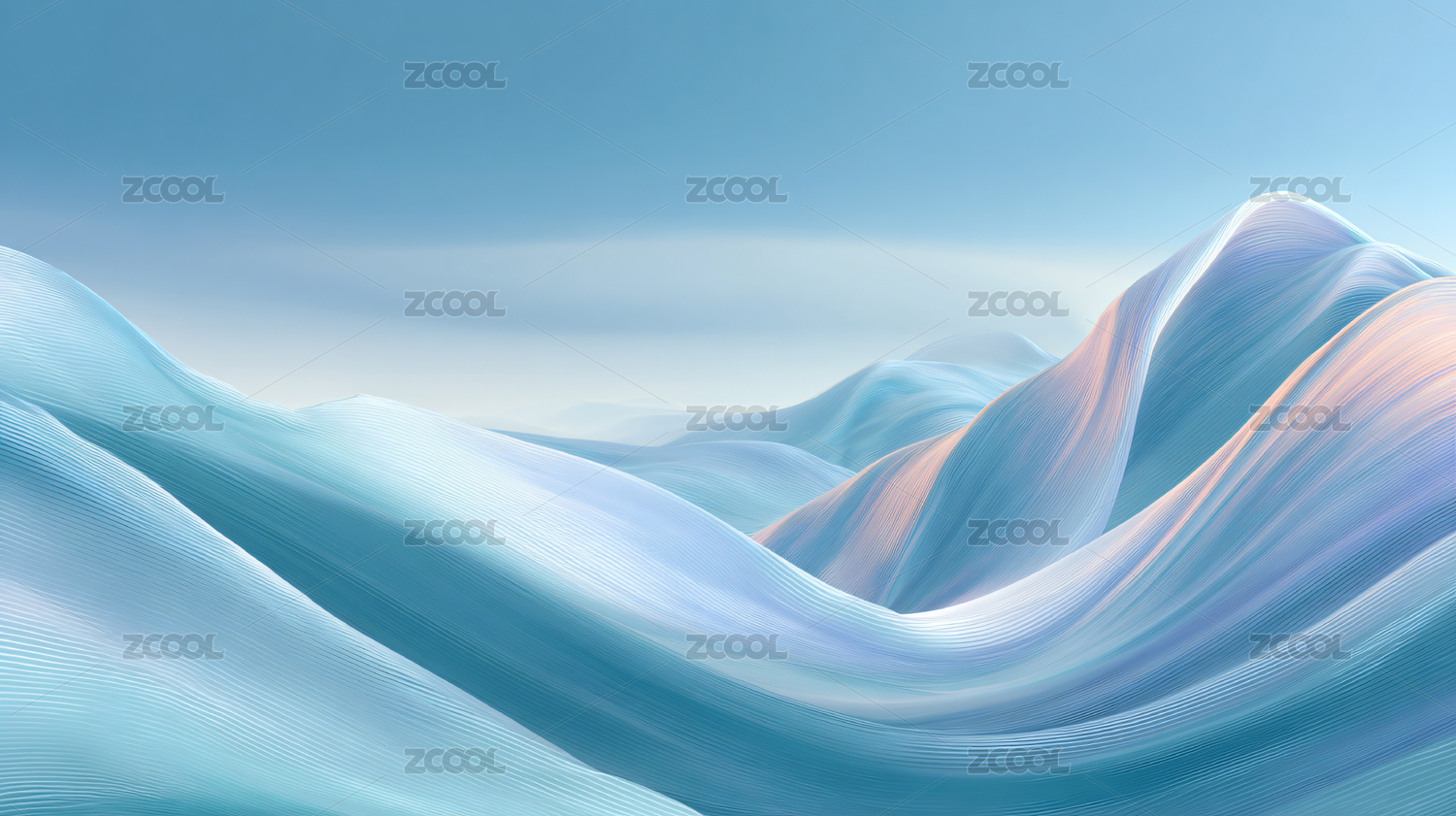 3D渲染蓝色立体山形波浪抽象流波纹理