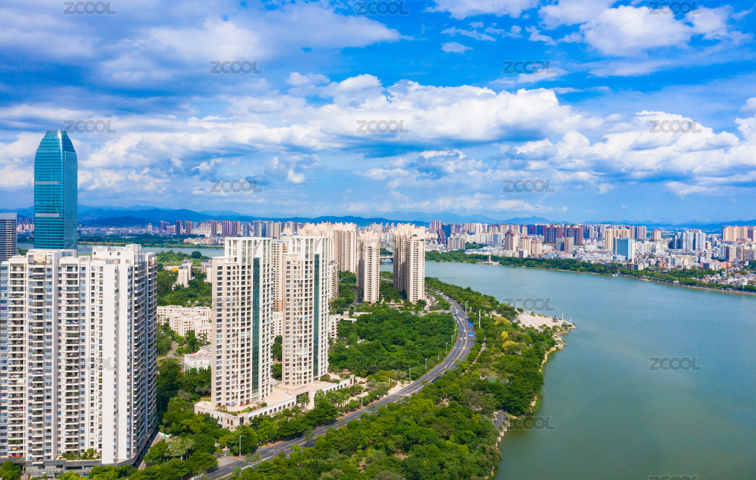 广东省惠州市东江两岸城市天际线景观
