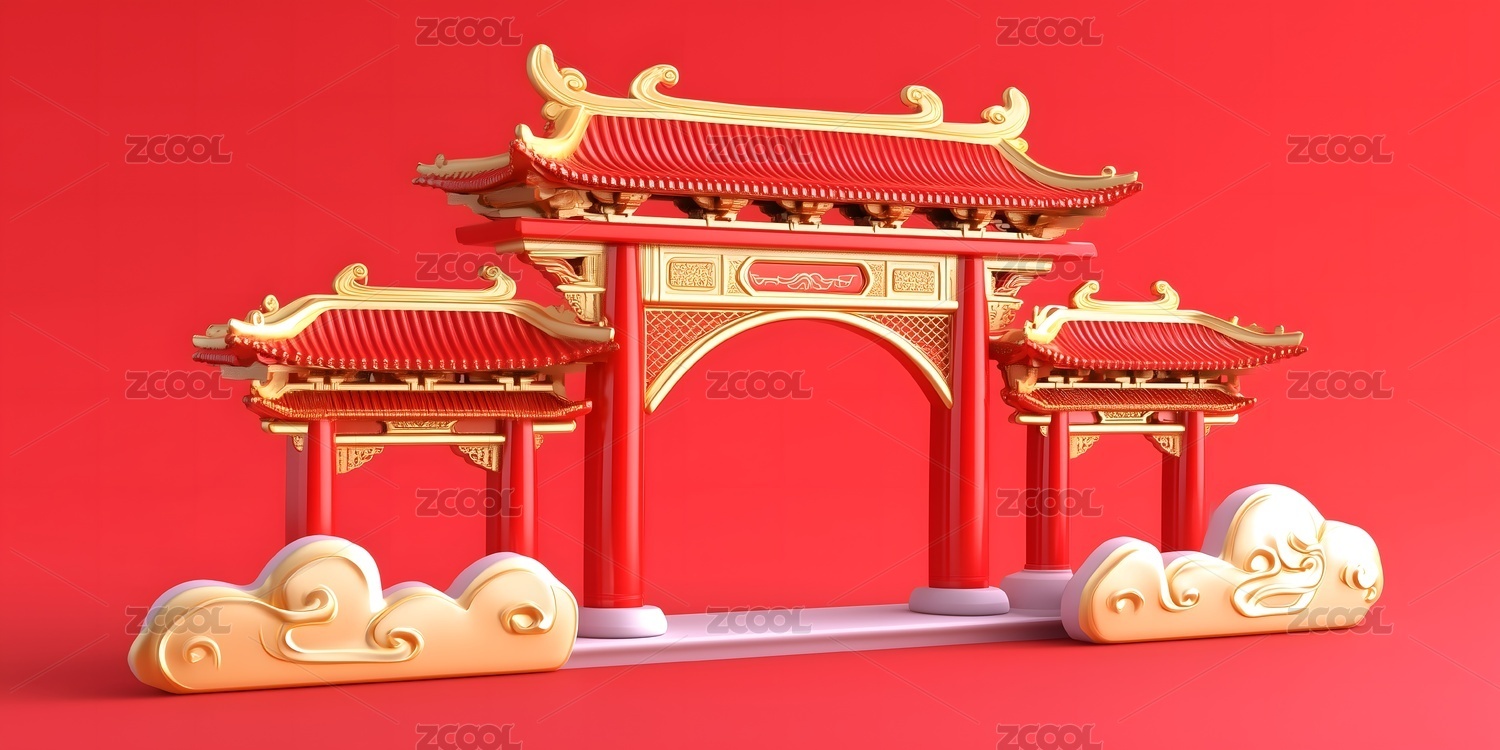 中国风红色牌坊设计