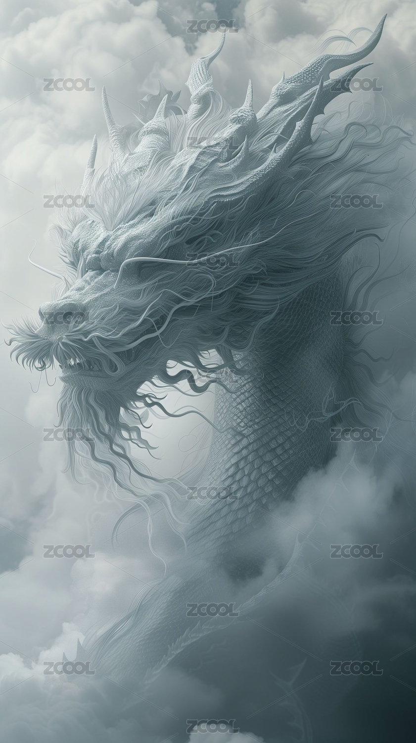 龙,水墨,巨物,中国龙,对峙,插画,水墨画,巨物恐惧,怪兽