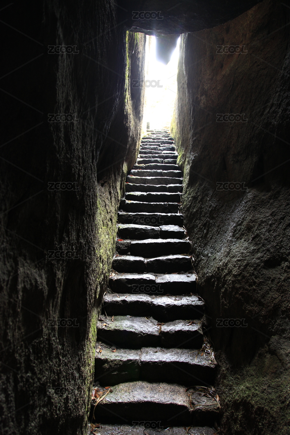 中国福建省武夷山,大王峰景区中崎岖陡峭的登山道