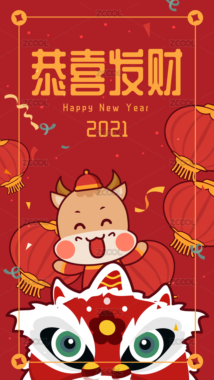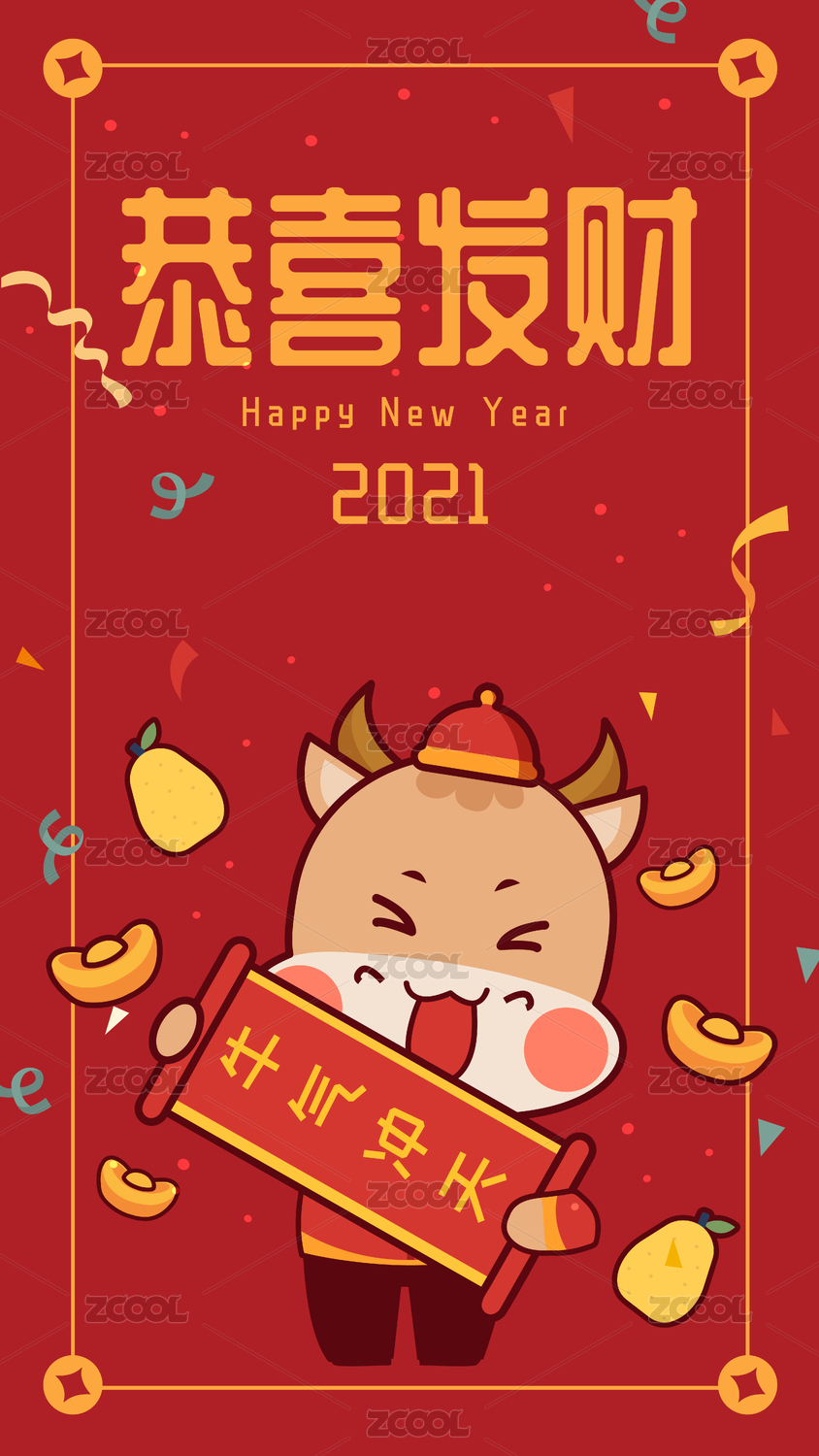 2021,牛年,红包,卡通牛,HEZODIAC2021