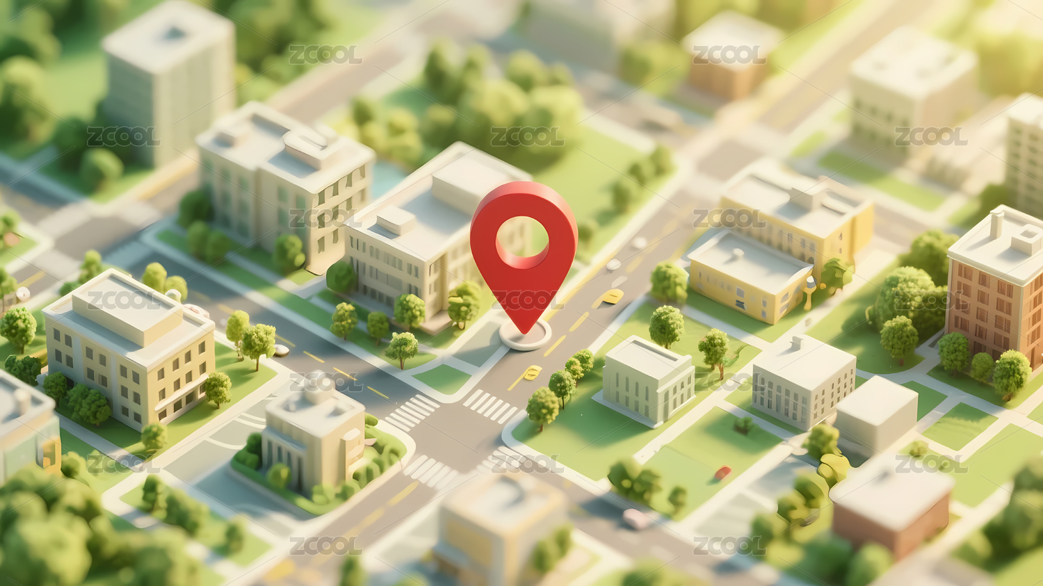 红色定位图标模糊城市
