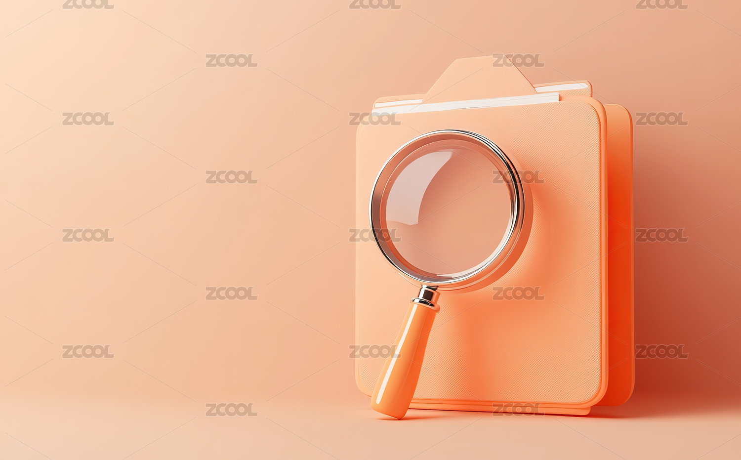 橙色背景下的书和放大镜特写