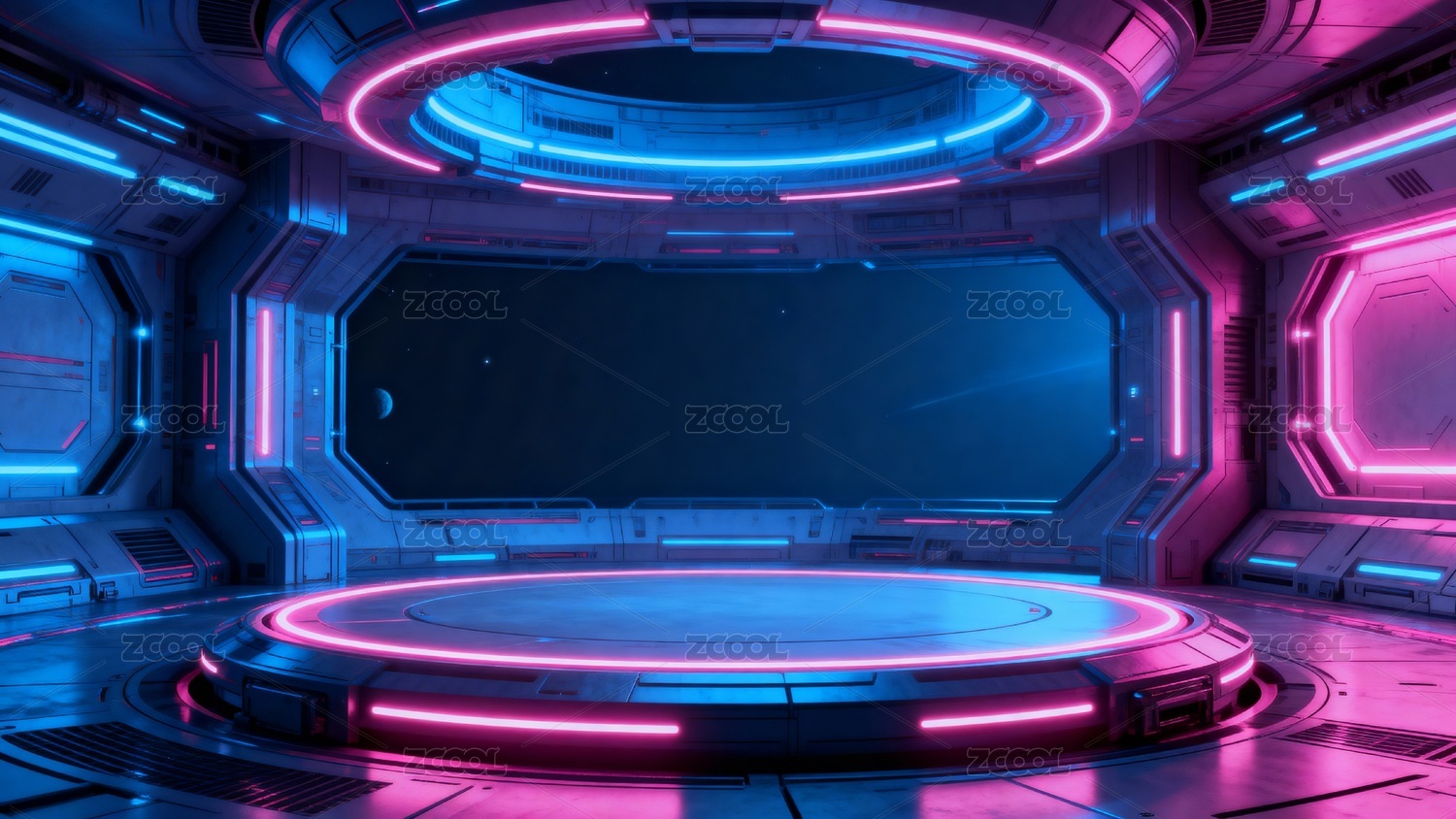 3D渲染的科幻延伸背景,几何隧道和霓虹灯