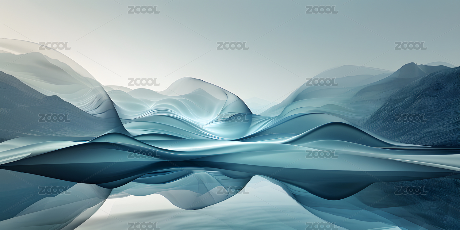 深蓝色渐变抽象山脉湖泊倒影景观壁纸背景