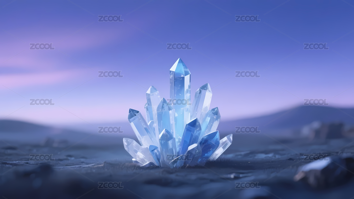 蓝紫渐变水晶山脉