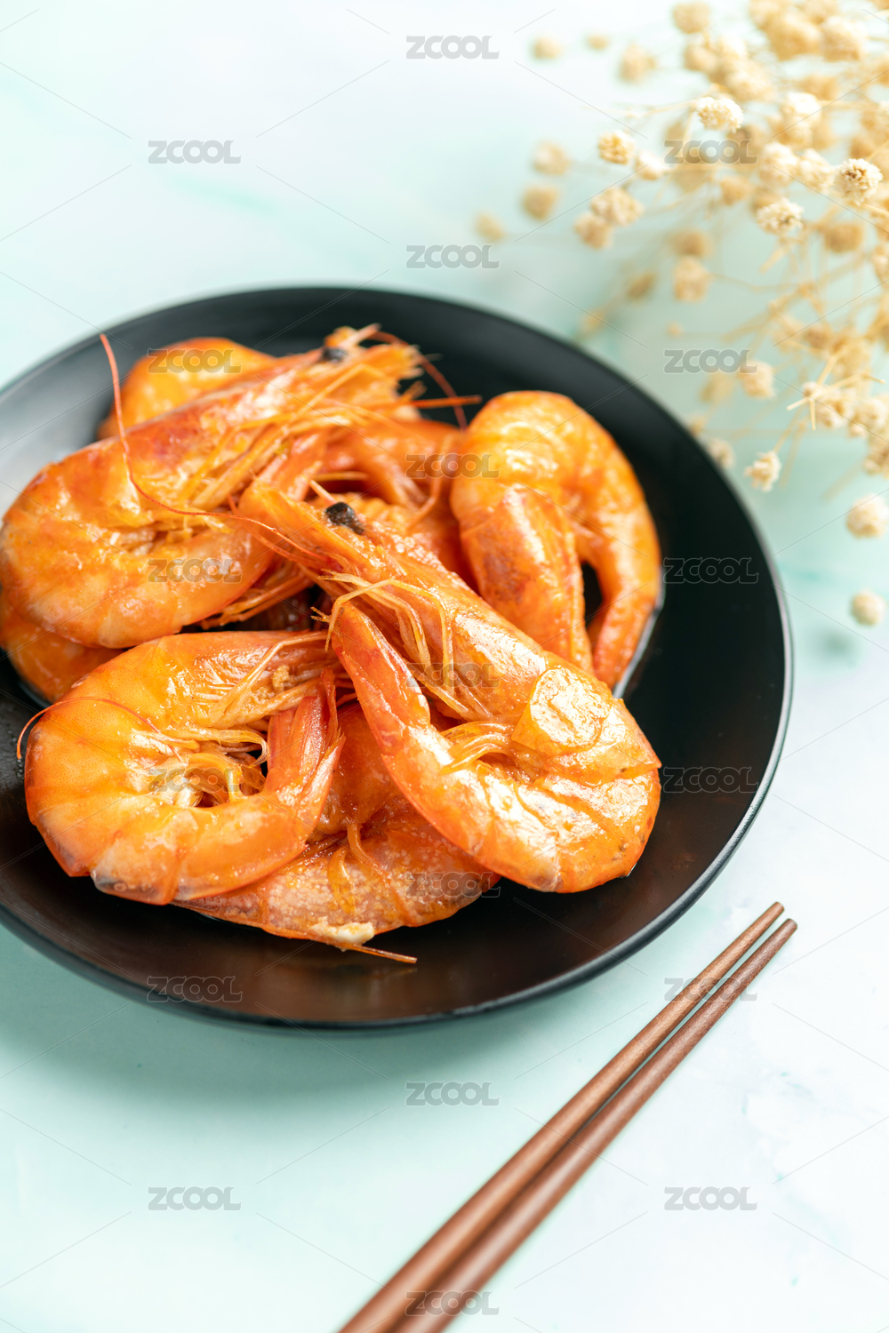 辣炒大虾,中餐,美食,美味,炒菜,海虾,木桌,木纹,白色盘子,HENP202101