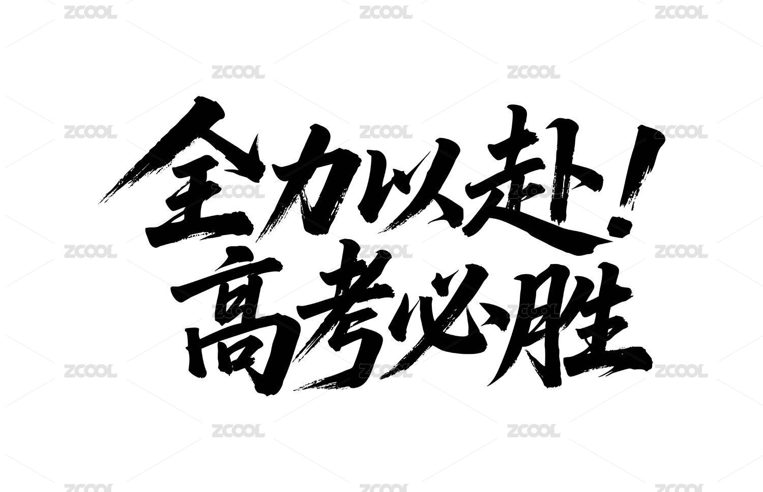 全力以赴高考必胜矢量书法手写毛笔字
